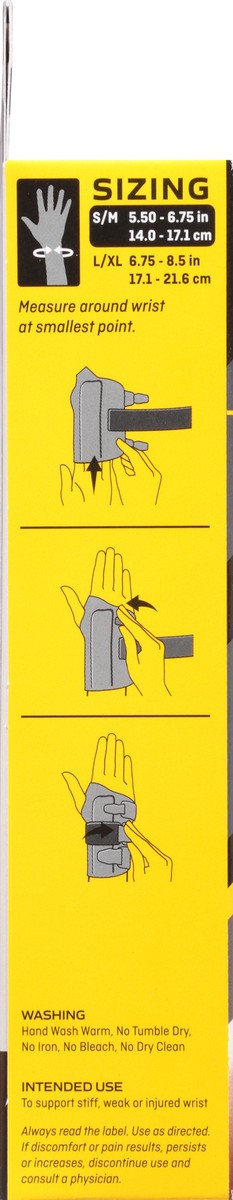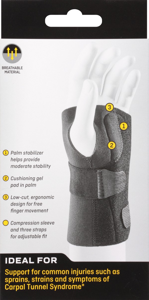 Compression stabilizing brace. Provides immediate compression and stability for aching wrist. Measure around wrist at smallest point. Breathable material. 1 Palm stabilizer helps provide moderate stab…