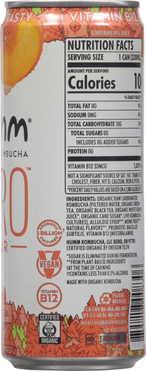 Humm Zero Peach Tea Probiotic Kombucha - 11 fl oz