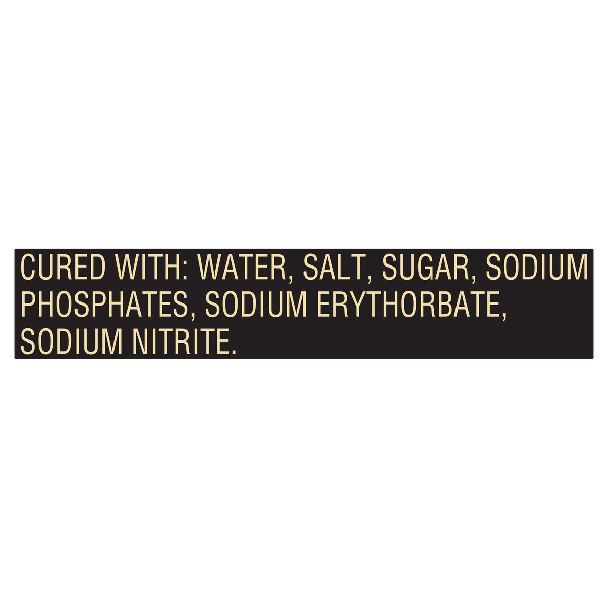 Cured With: Water, Salt, Sugar, Sodium Phosphates, Sodium Erythorbate, Sodium Nitrite