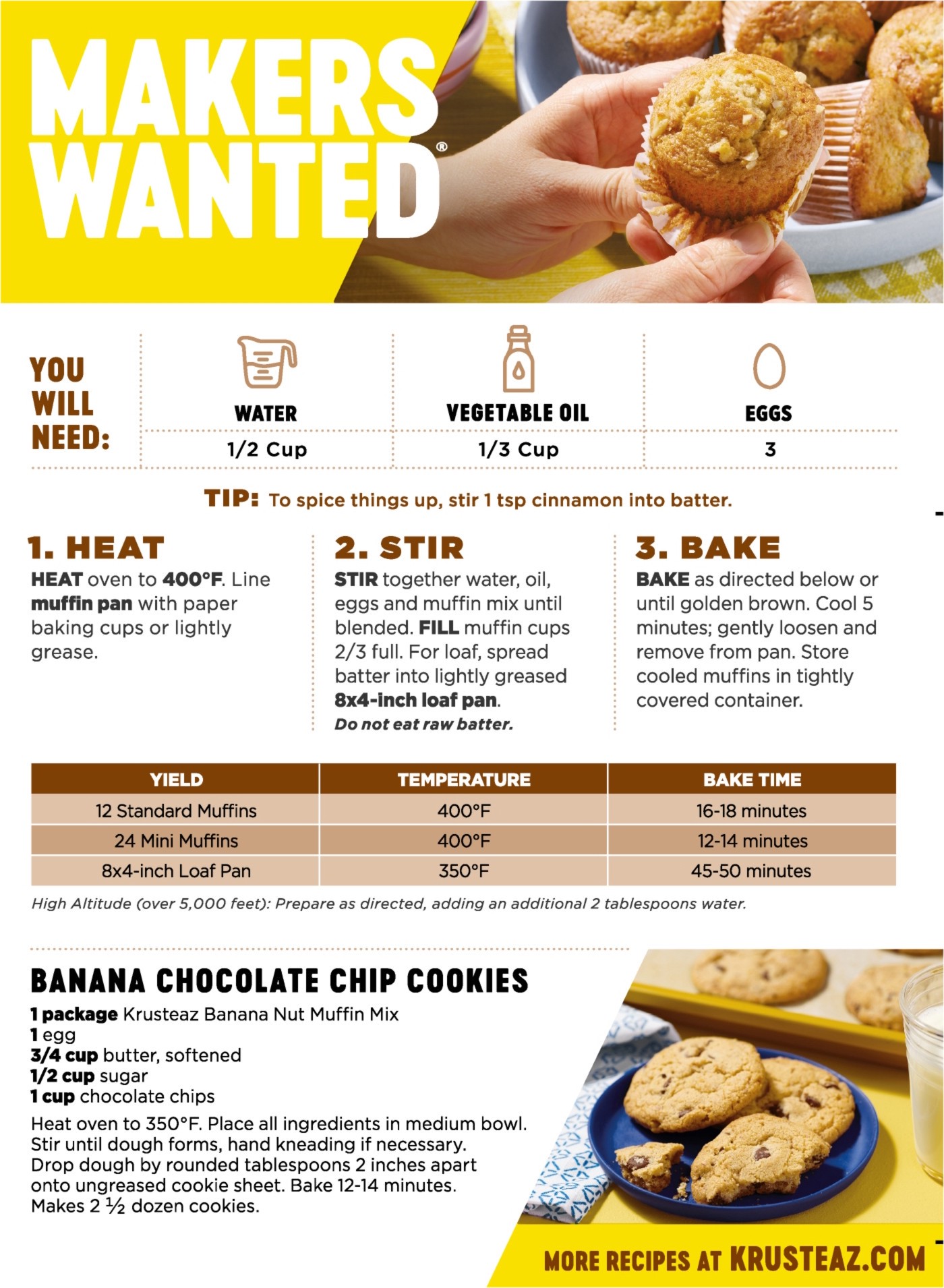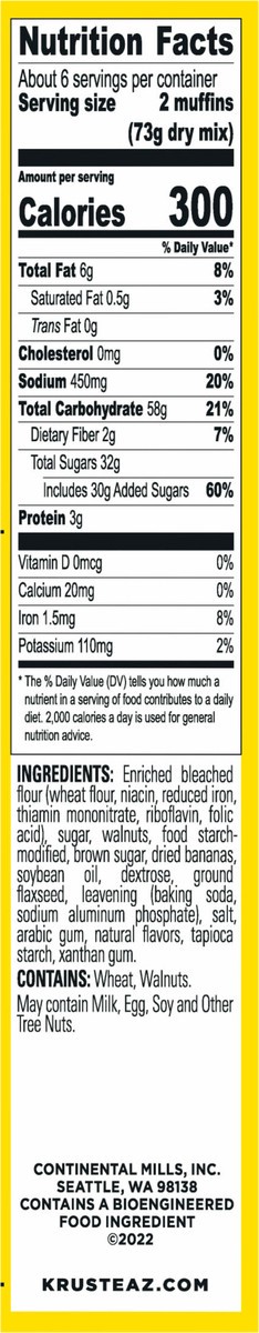 Real walnuts and real bananas mean really, really delicious. And moist and fluffy? You better believe it. In fact, Krusteaz Banana Nut Muffin Mix makes muffins and bread so mouthwatering, you''ll wond…