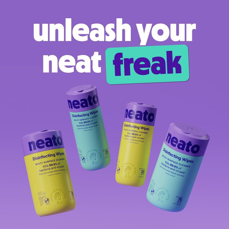 Neato™ Disinfecting Wipes allow you to unleash your inner neat freak. Killing 99.9% ofGerms, Bacteria and Viruses¹, Neato™ powers through tough messes, dirt and grease, The Fresh scented wipes help re…