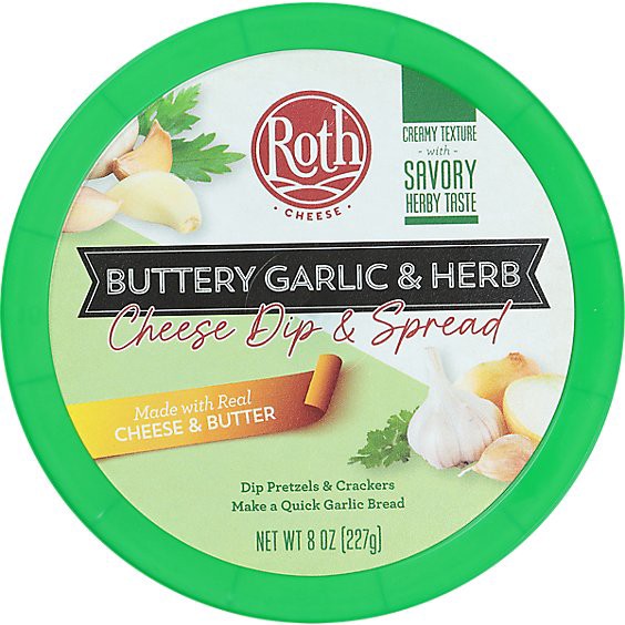 Made with real Wisconsin-made butter and cheese, Roth''s buttery garlic and Herb cheese dip and spread is creamy, while bursting with the flavors of garlic and herbs. Dip pretzels, vegetables and crac…