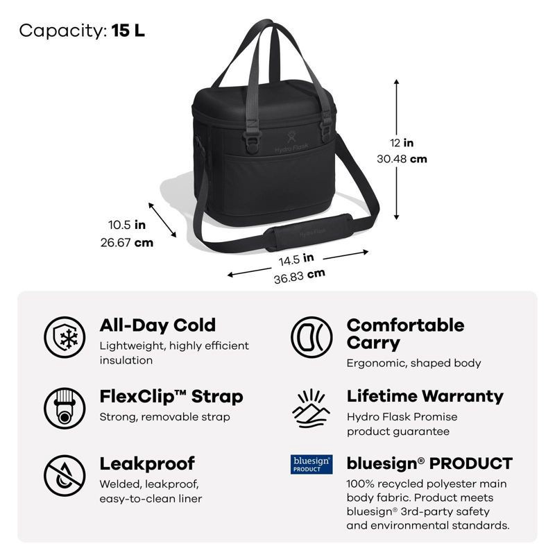 Hydro Flask 15 Liter Carryout 24 Cans/15.8qt Soft-Sided Cooler - Black