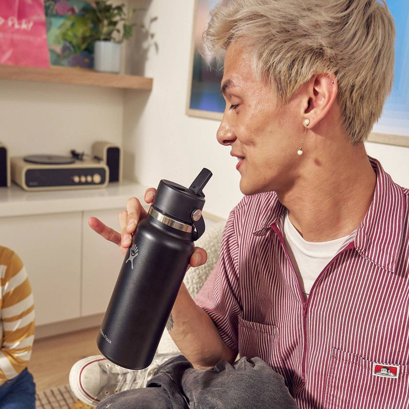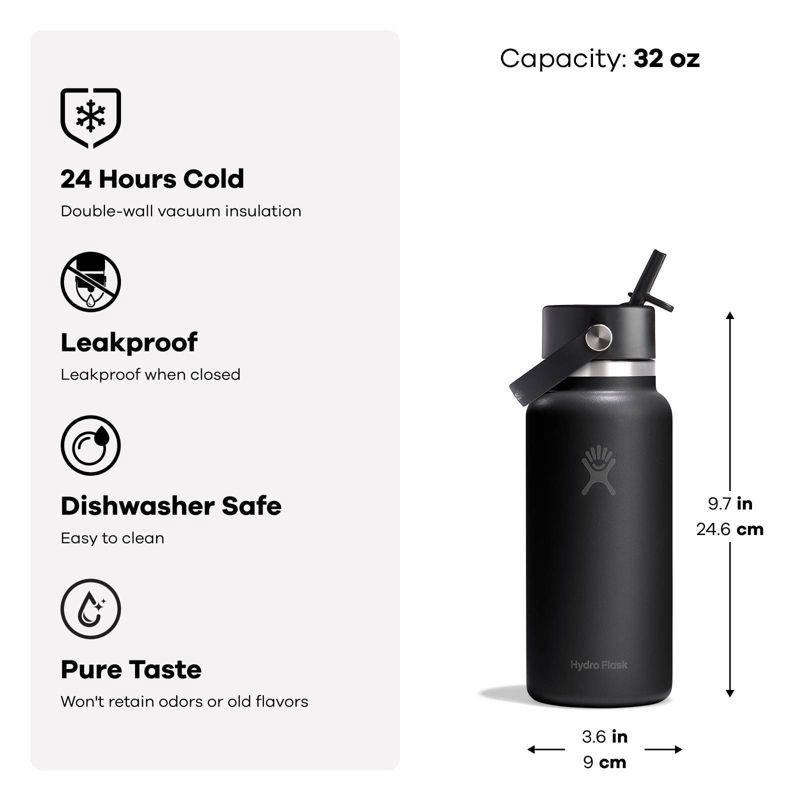 Flip it and sip it with the Hydro Flask 32 oz Wide Mouth Bottle With Flex Straw Cap. With a comfortable, flexible handle, the closeable, leakproof straw cap is easy to open and close with one hand, fo…
