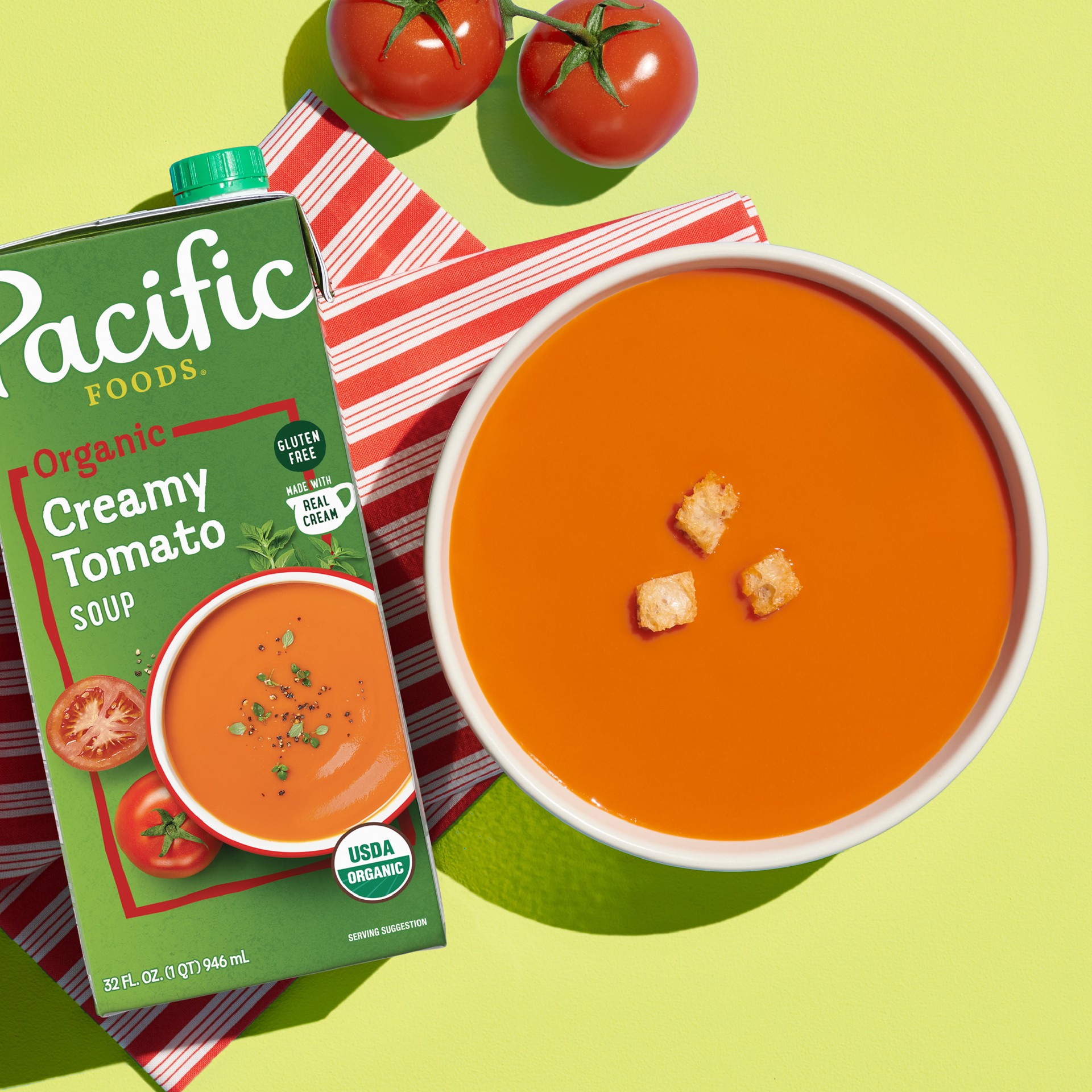Immerse your taste buds into something truly unique with Pacific Foods Organic Creamy Tomato Soup. Rich and tangy, this USDA Organic soup is consciously crafted with non-GMO ingredients, including vin…
