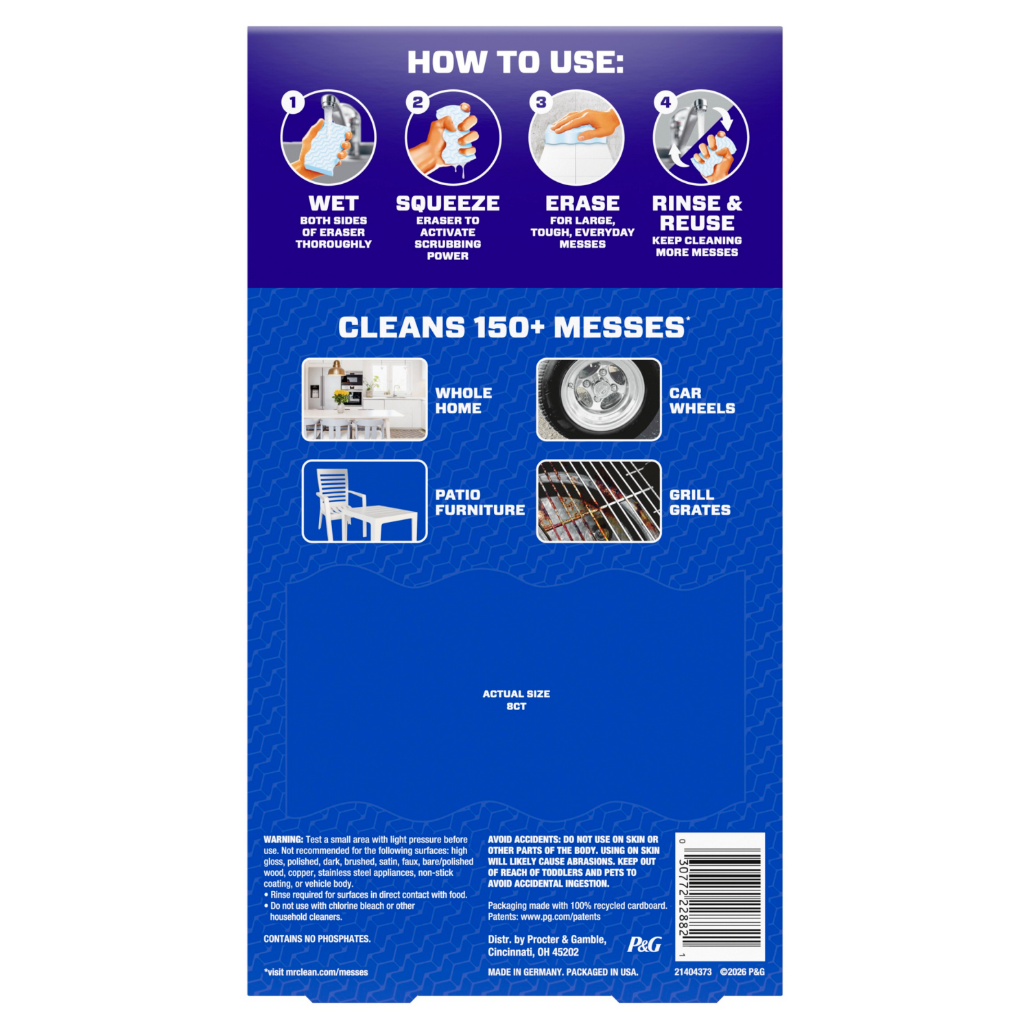 Mr Clean Mr. Clean Magic Eraser Sponge, All Purpose Cleaner, Long Lasting Cleaning Scrubber, Whole Home Extra Durable Xl, 8ct