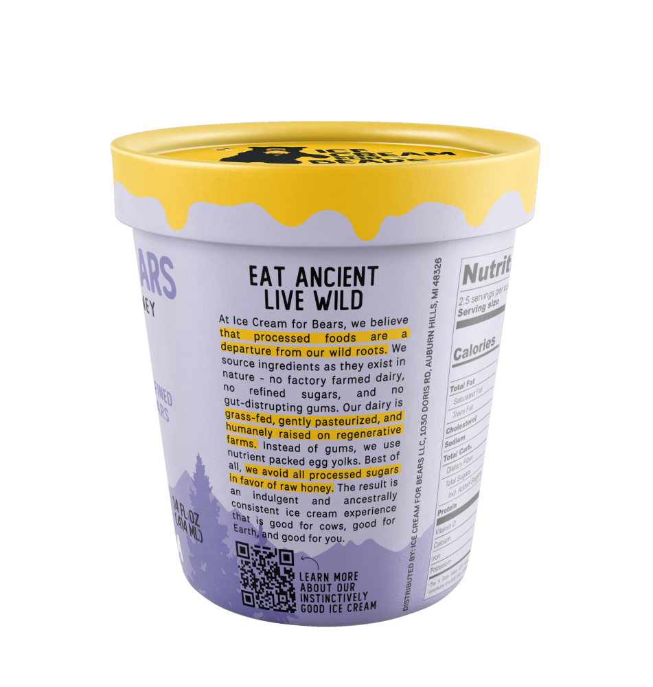 Grass-fed, regenerative dairy Egg yolks as the only stabilizer Sweetened with raw honey