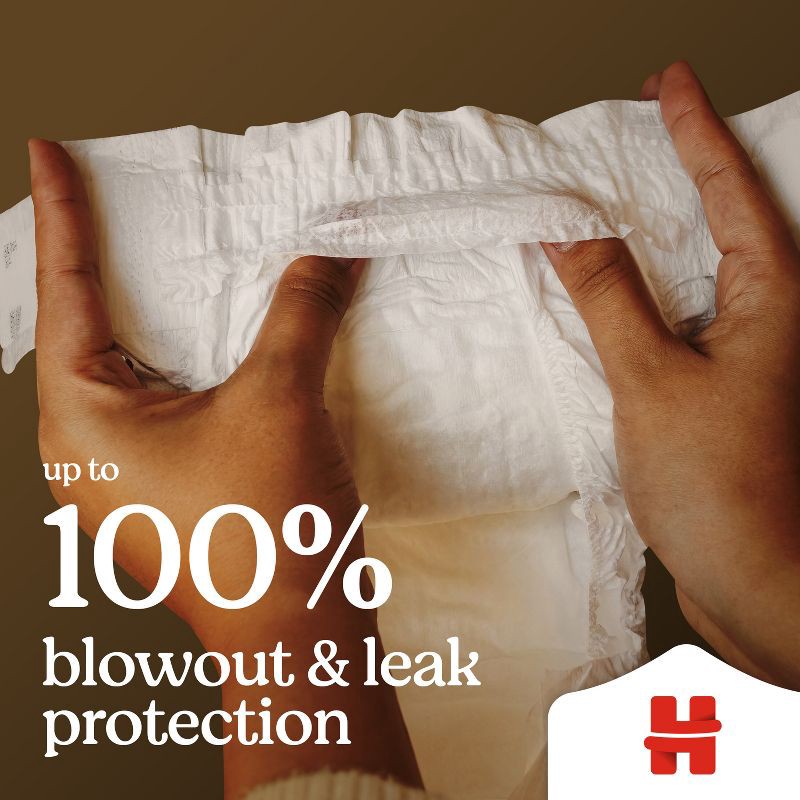 Features: Dual Grip Tabs, Safe to Use On Sensitive Skin, Adhesive Strips, Easy-Open Sides, Elastic Stretch Sides, Leak Guards, Hypoallergenic, Wetness Indicator, Latex-Free, Free of Petroleum-Based Lotions, SnugFit Waistband, Absorbent Layers