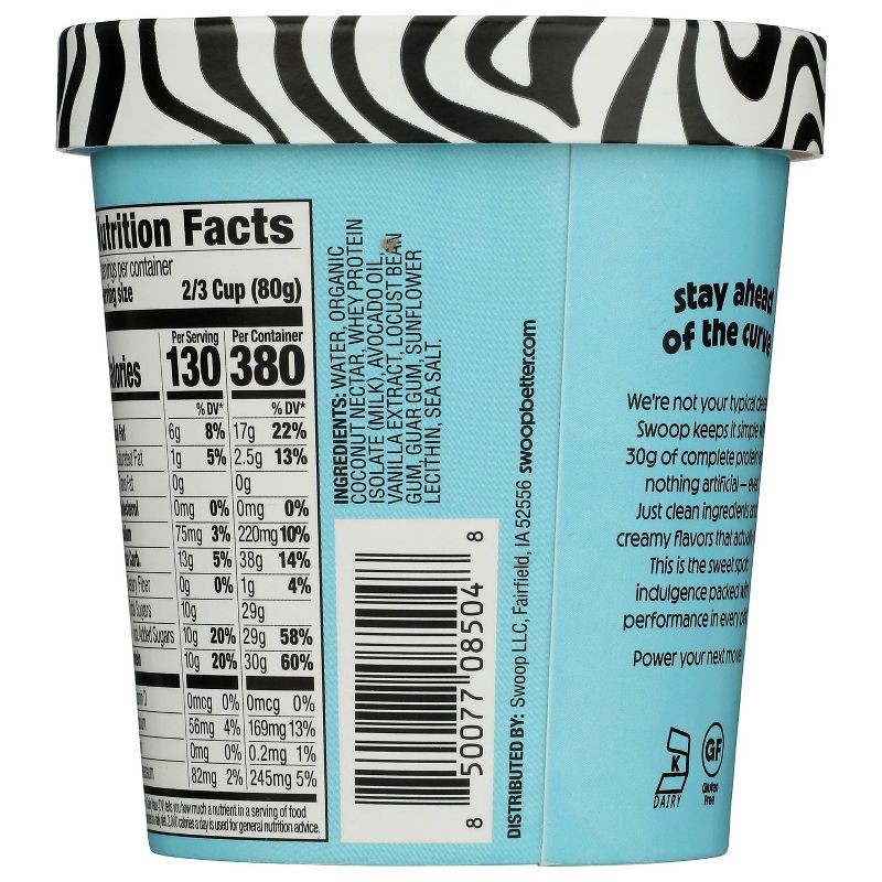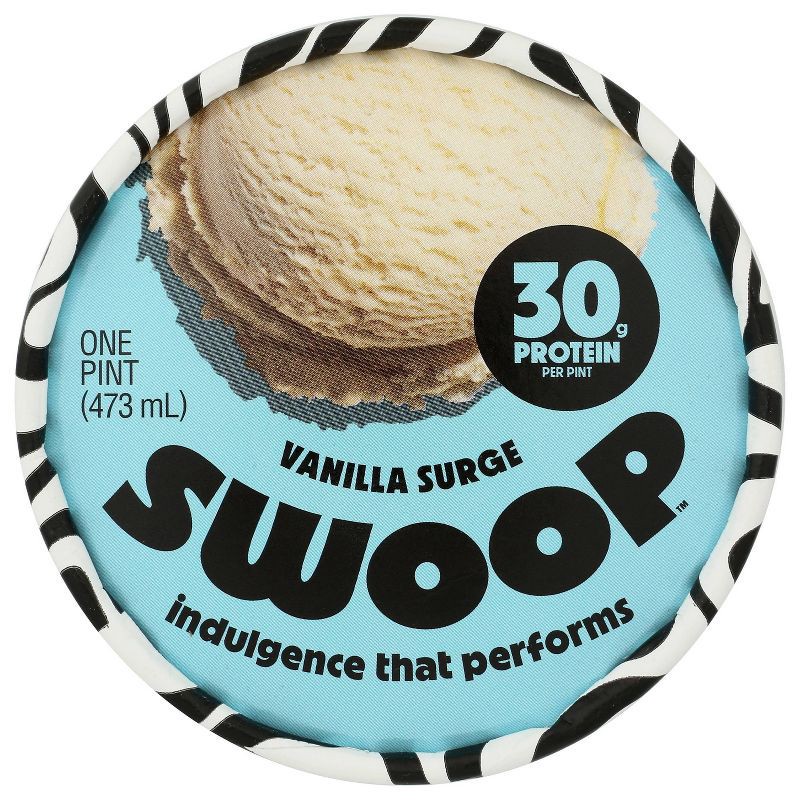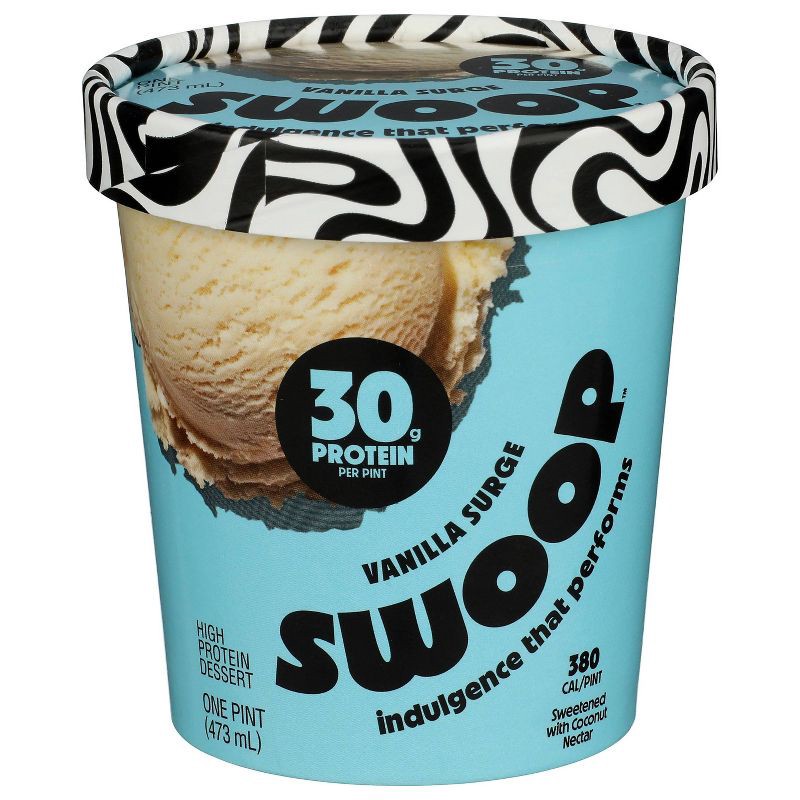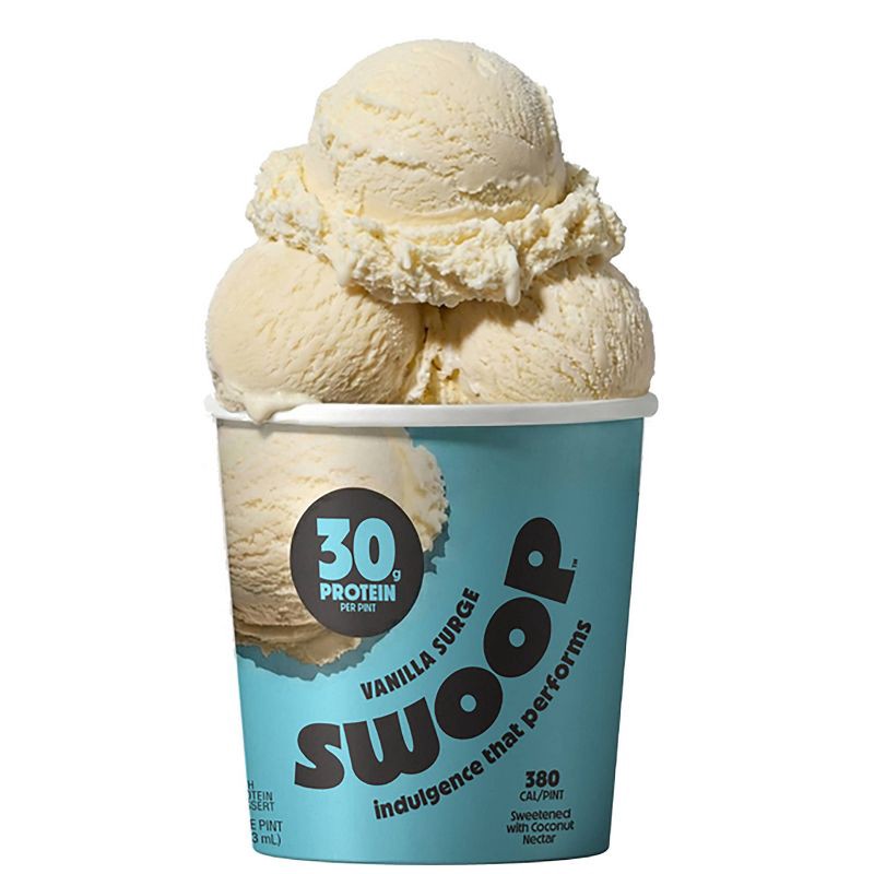 - One pint of creamy, craveable Swoop Vanilla Surge high-protein ice cream