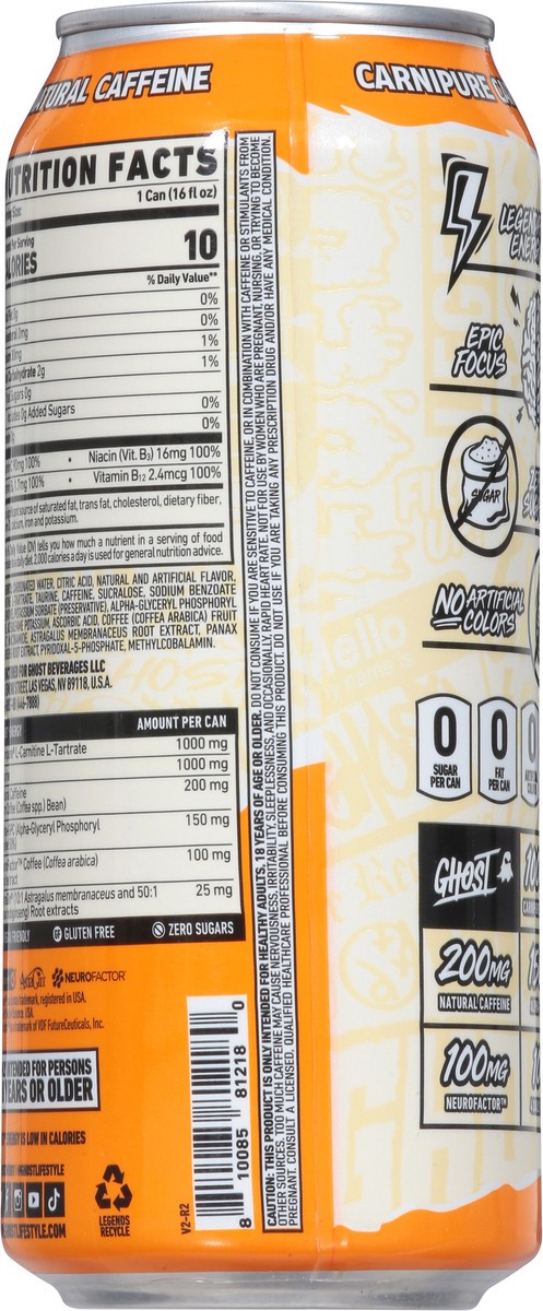 Ghost Energy: Carnipure L-Carnitine L-Tartrate, Taurine, Natural Caffeine (from Coffee (Coffea Spp.) Bean), Alpha-GPC (Alpha-Glyceryl Phosphoryl Choline 50%), NeuroFactor Coffee (Coffea Arabica) Fruit…