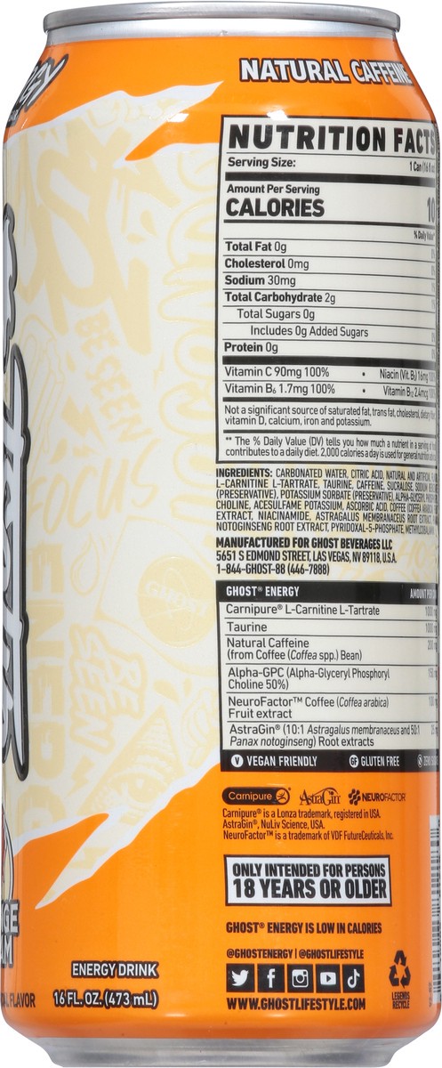 - TOTAL TRANSPARENCY: All Ghost products feature a transparent label that fully discloses the dose of each active ingredient. Zero proprietary blends means you know what you’re getting in each and every sip. Ghost Energy contains zero-sugars and is vegan-friendly and gluten-free.