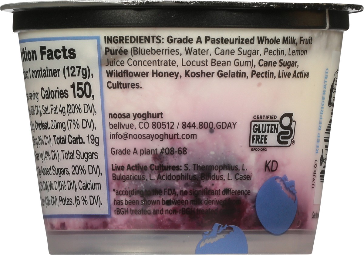 Grade A Pasteurized Whole Milk, Fruit Puree (Blueberries, Water, Cane Sugar, Pectin, Lemon Juice Concentrate, Locust Bean Gum), Cane Sugar, Wildflower Honey, Kosher Gelatin, Pectin, Live Active Cultur…