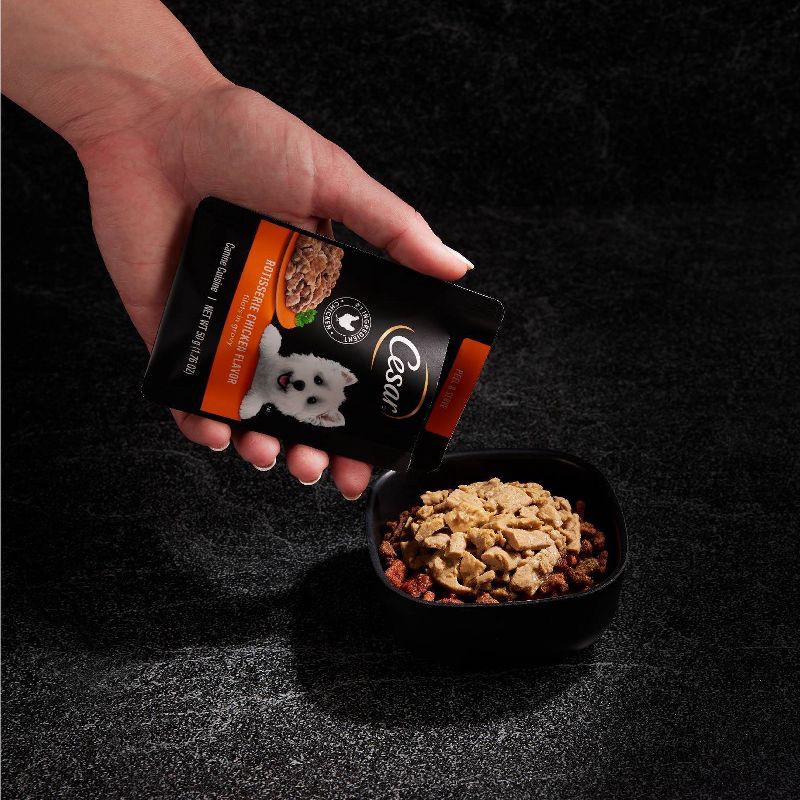 - Mix up Mealtime: This wet dog food can be served as a snack, as a full meal, or as a topper with your dog's favorite Cesar Dry Dog Food.