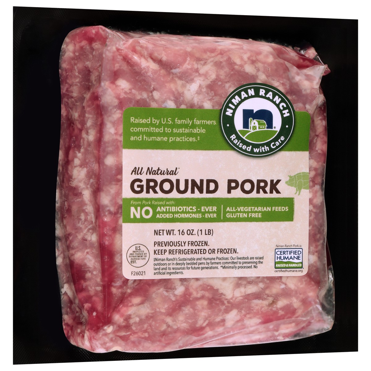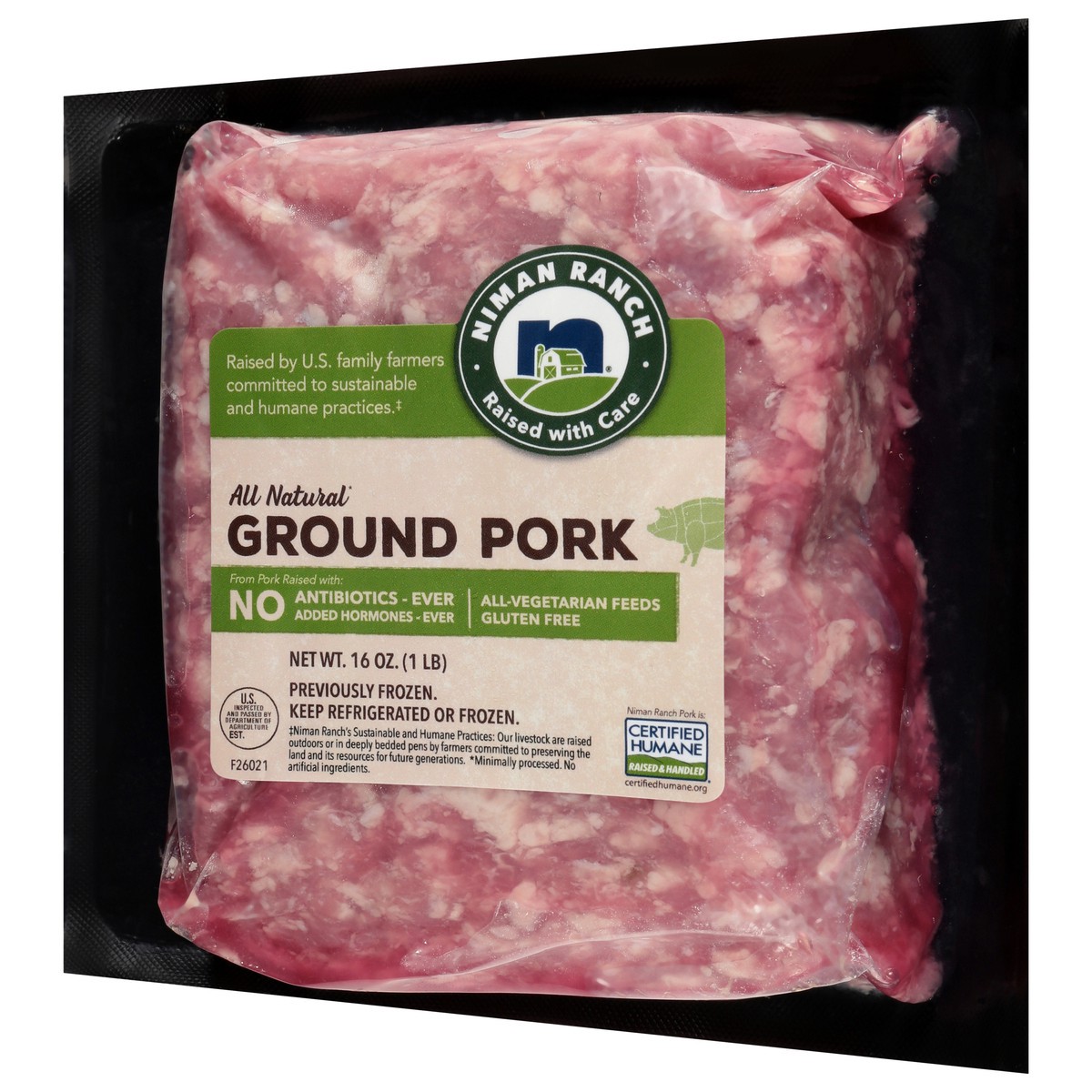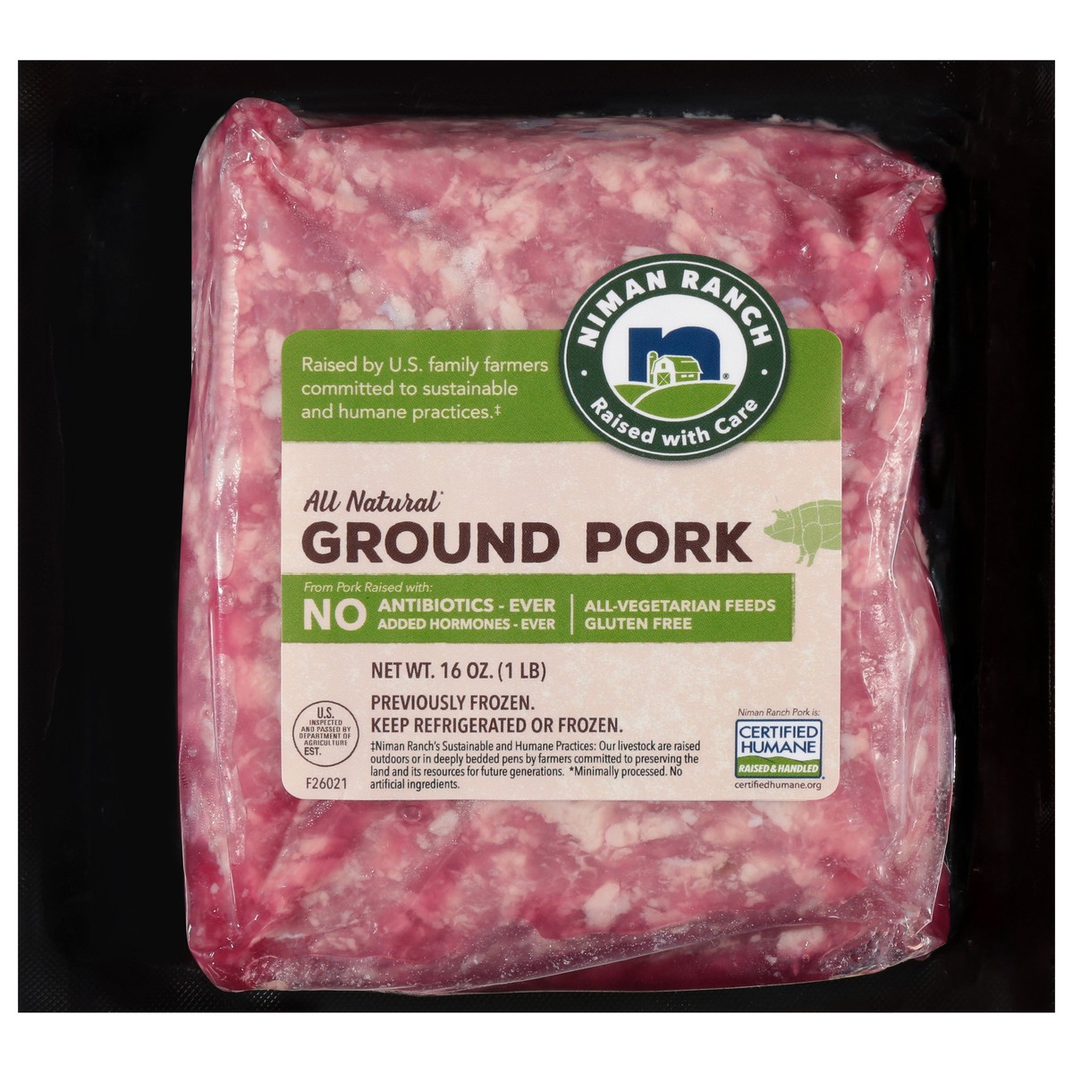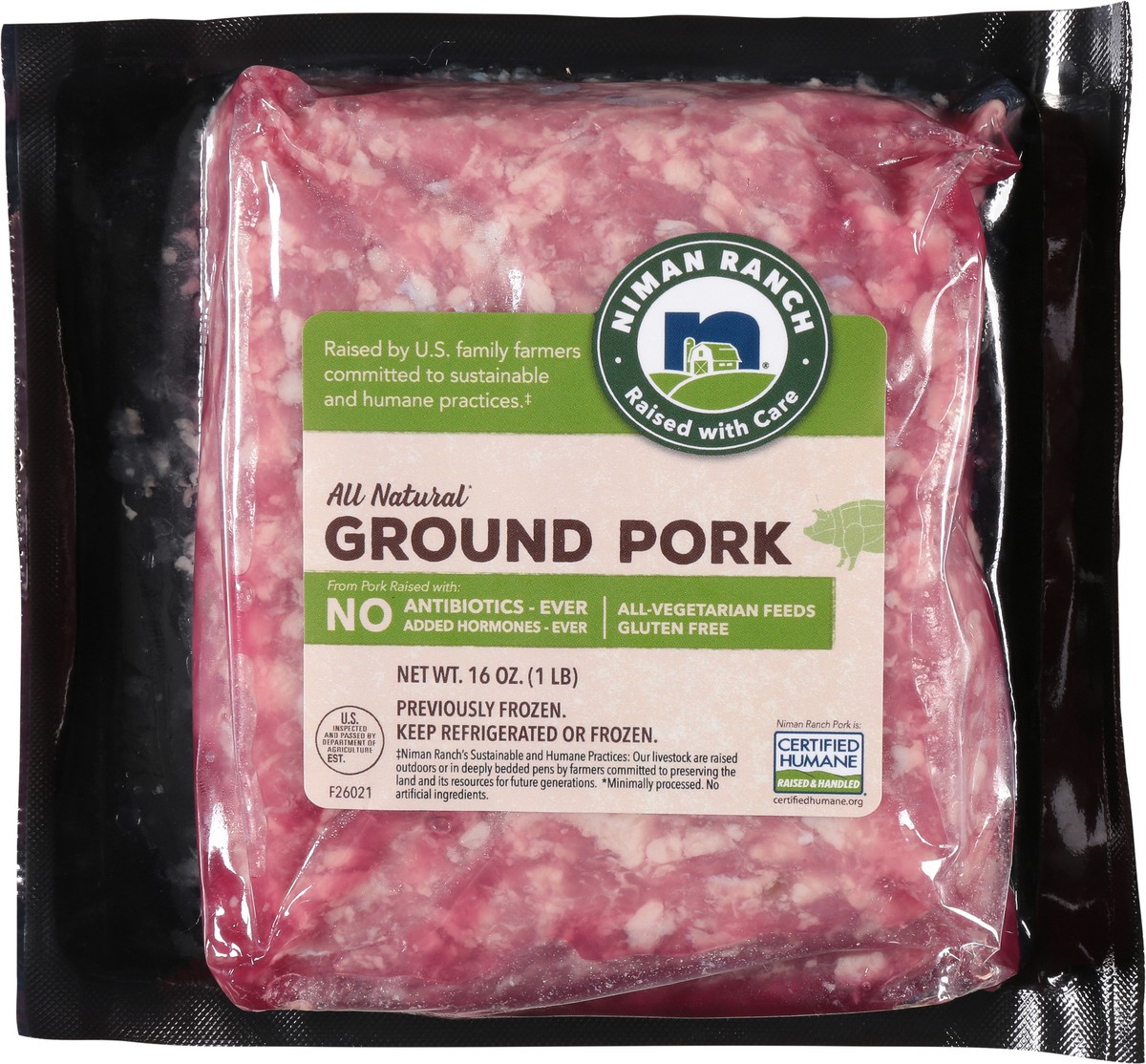 Niman Ranch All Natural Ground Pork is made from pork raised in the USA by independent family farmers using humane and sustainable practices. Raised With Care outdoors or in deeply bedded pens, this C…