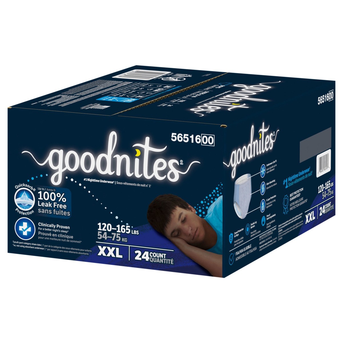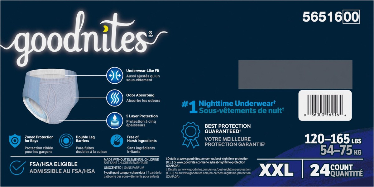 Goodnites Boys' Nighttime Underwear Size Xxl (120-165 Lbs) 24 Ct