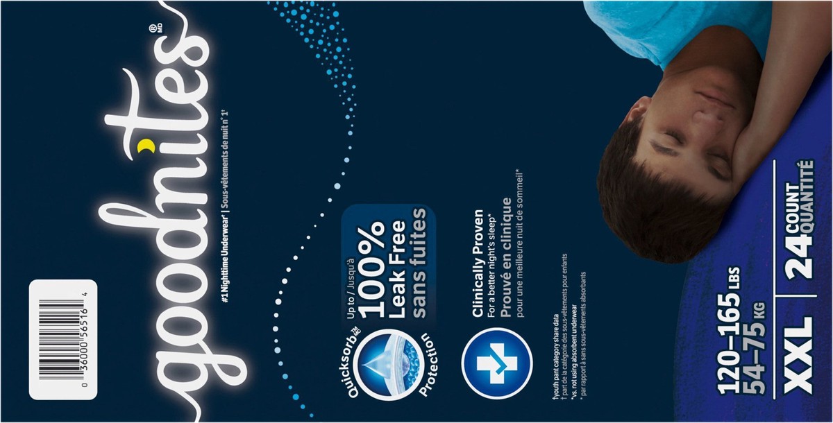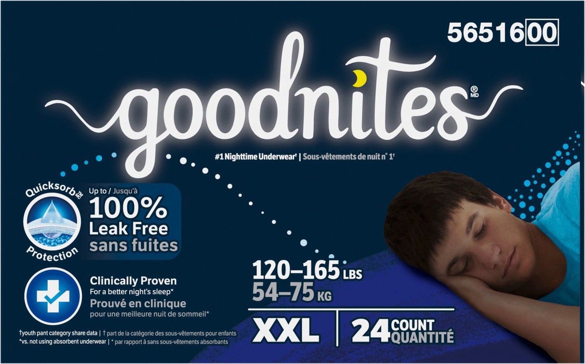 Help your kids wake up dry with Goodnites Nighttime Underwear, the #1 nighttime underwear,* now available in a new XXL size! These nighttime underwear are made with Quicksorb Protection for up to 100%…