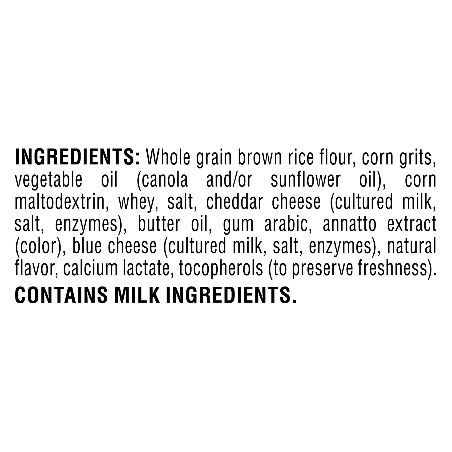 Whole Grain Brown Rice Flour, Corn Grits, Vegetable Oil (Canola And/Or Sunflower Oil), Corn Maltodextrin, Whey, Salt, Cheddar Cheese (Cultured Milk, Salt, Enzymes), Butter Oil, Gum Arabic, Annatto Ext…