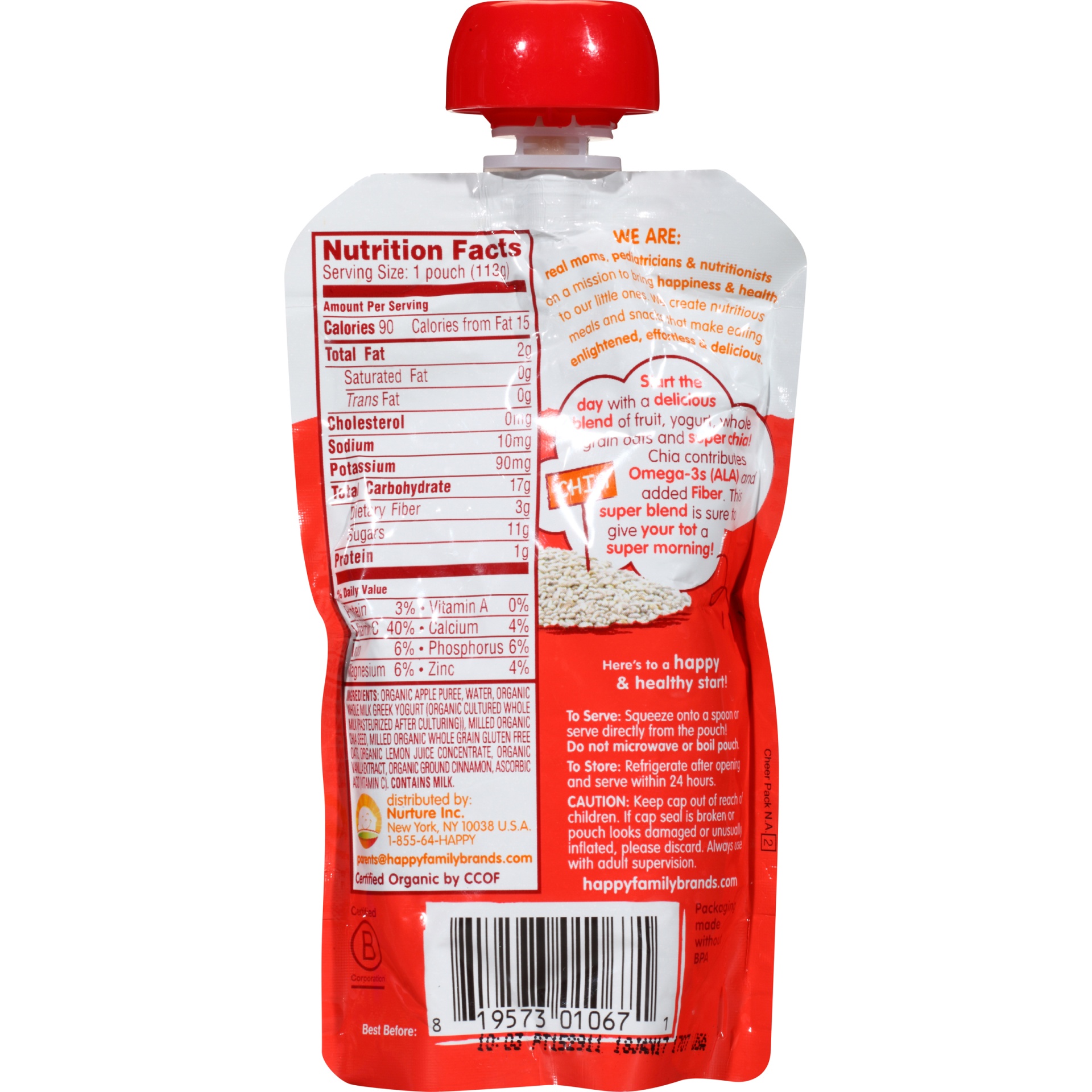 Happy Tot Organics Super Morning Stage 4 Organic Apples, Cinnamon, Yogurt & Oats + Super Chia Pouch 4 Oz UNIT