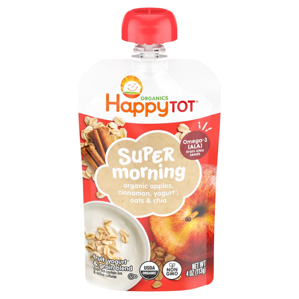 Turn a good morning into a super morning, with Happy Tot Super Morning organic toddler pouches. Each pouch features a delicious breakfast blend, like organic apple, cinnamon, and whole milk yogurt*. T…