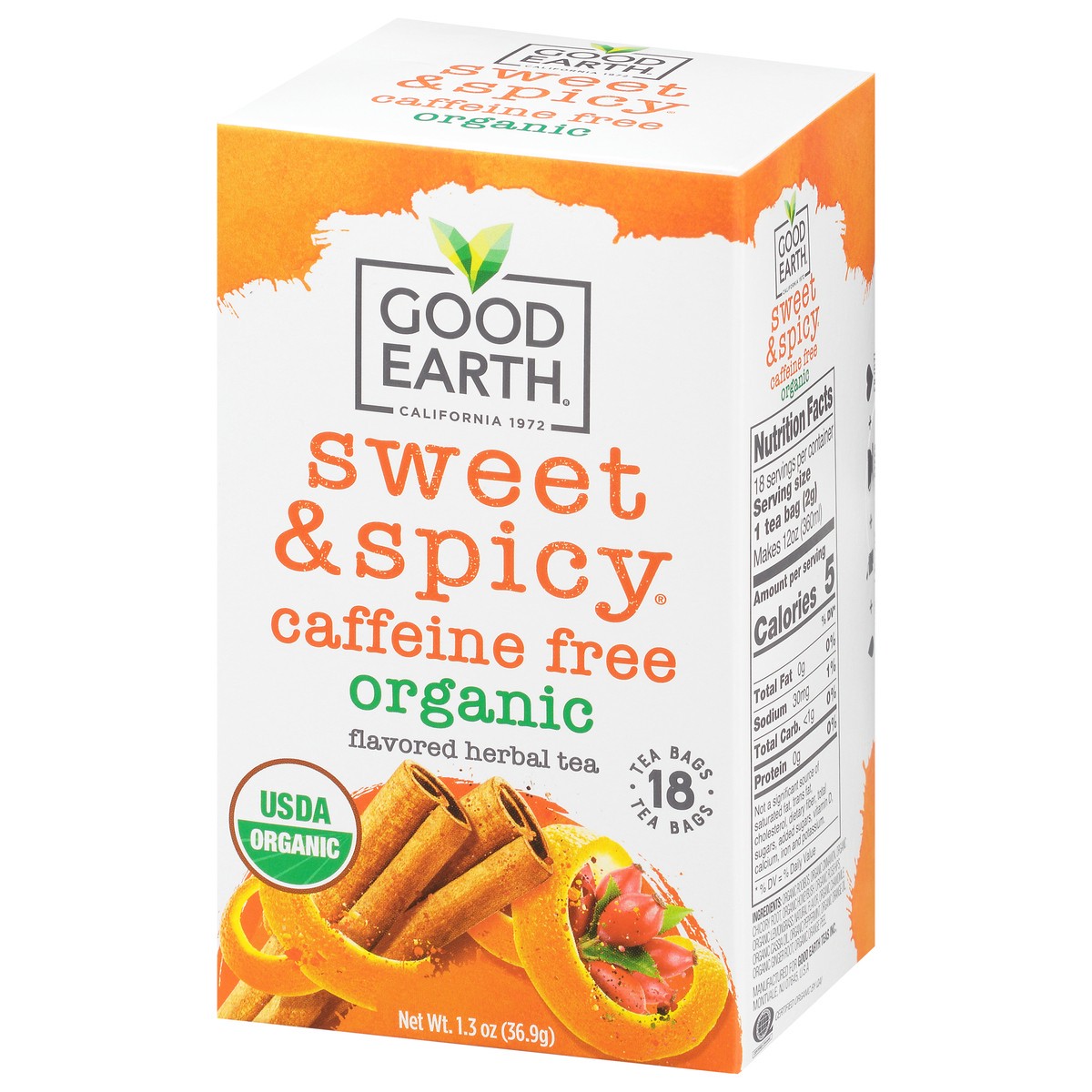 Organic Rooibos, Organic Cinnamon, Organic Chicory Root, Organic Honeybush, Organic Rosehips, Organic Lemongrass, Natural Flavor, Organic Chamomile, Organic Cassia Oil, Organic Peppermint, Organic Ora…