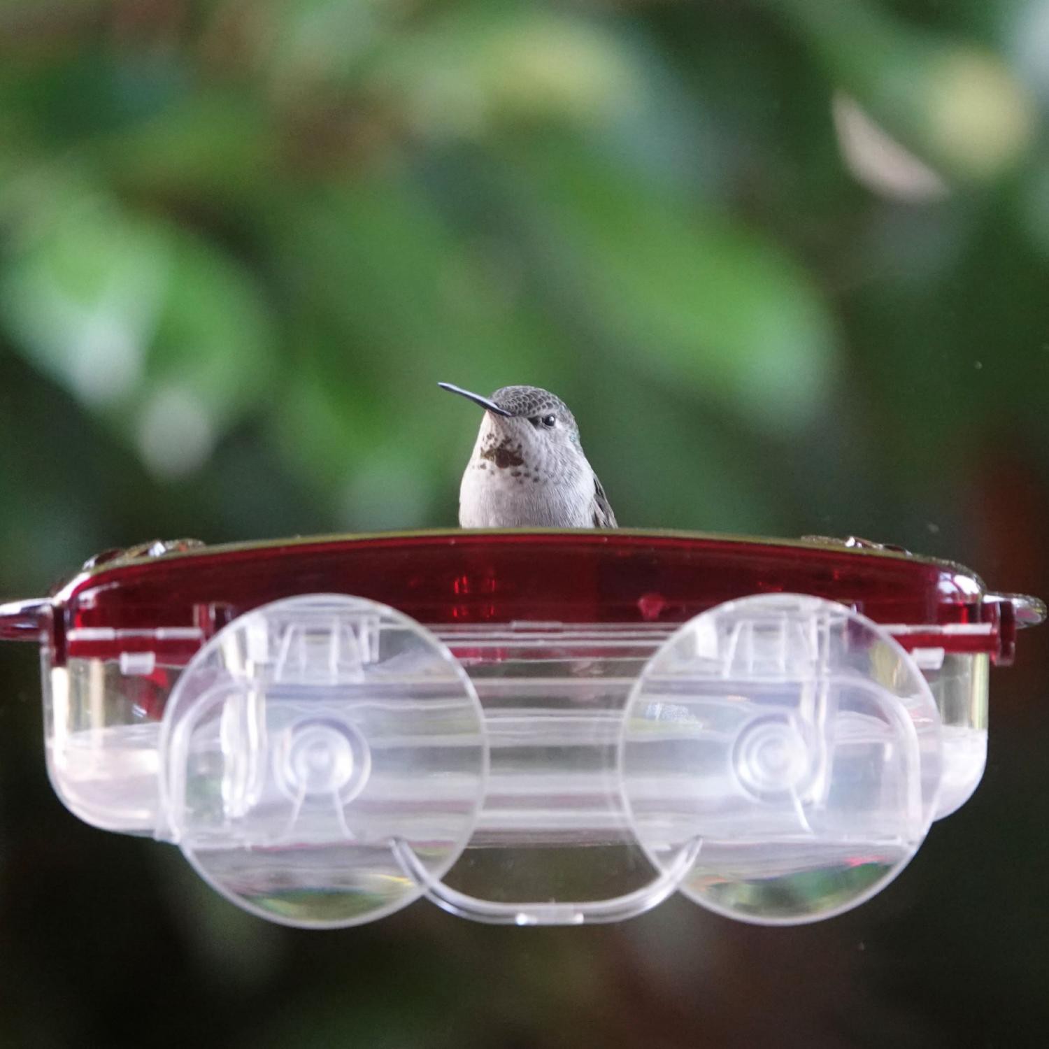 This feeder features built-in hummingbird perches to encourage longer feeding times and window-mount technology for the most up-close hummingbird viewing. A clear base dish allows you to easily see wh…