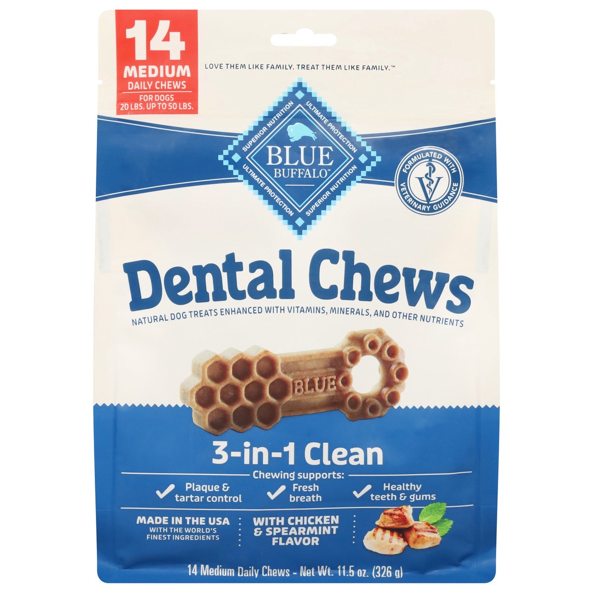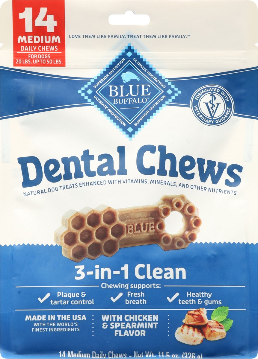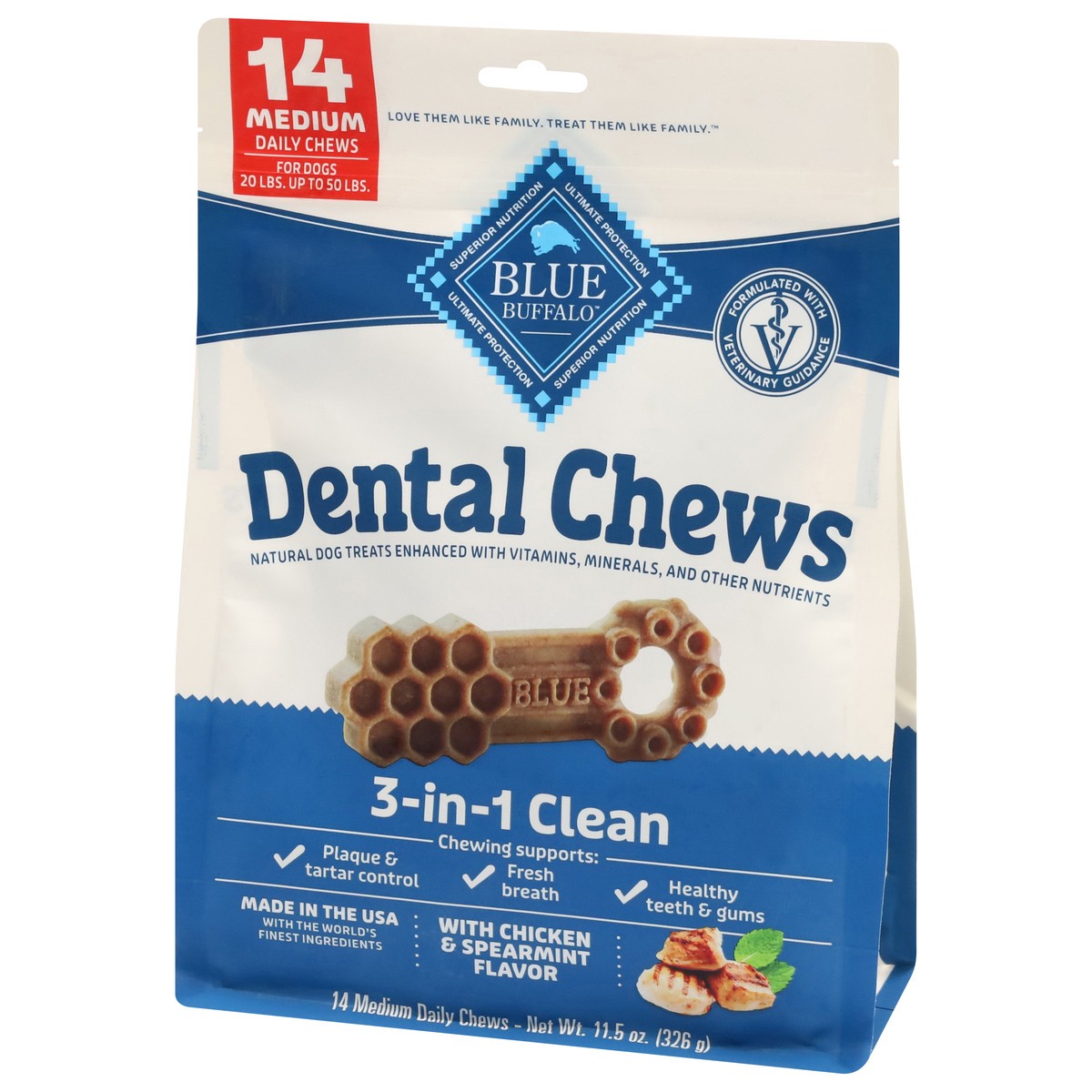 Blue Buffalo Medium Dental Chews for Dogs, Daily Dental Care Dog Treats with Natural Ingredients, Chicken & Spearmint (14 Count)