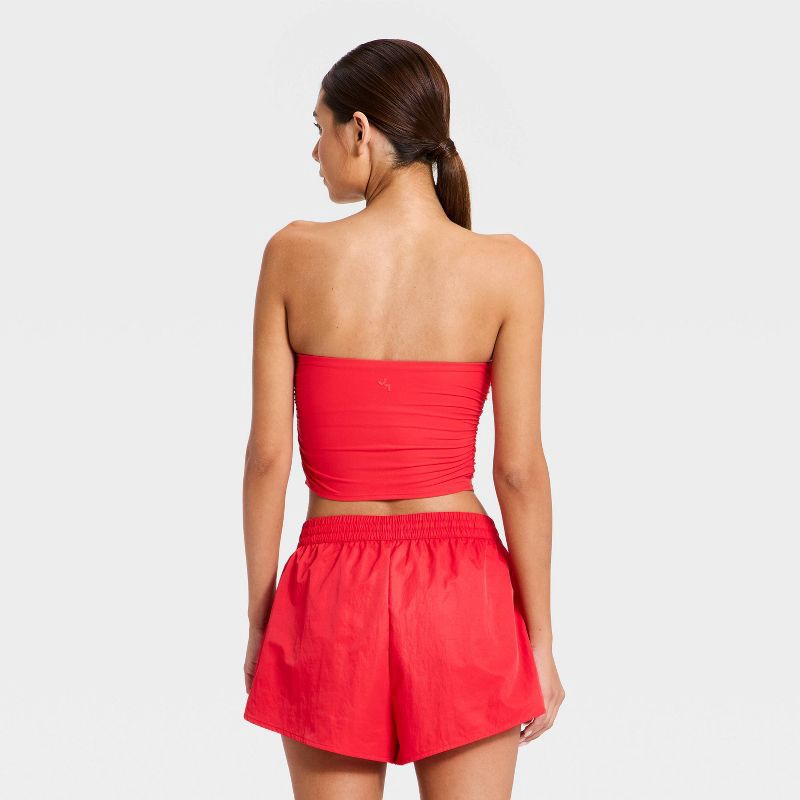 Bring bold style to your basics with this Bandeau Support Top from JoyLab™. Made from midweight nylon-spandex blend interlock fabric, this strapless top with shirring down the sides and a built-in she…