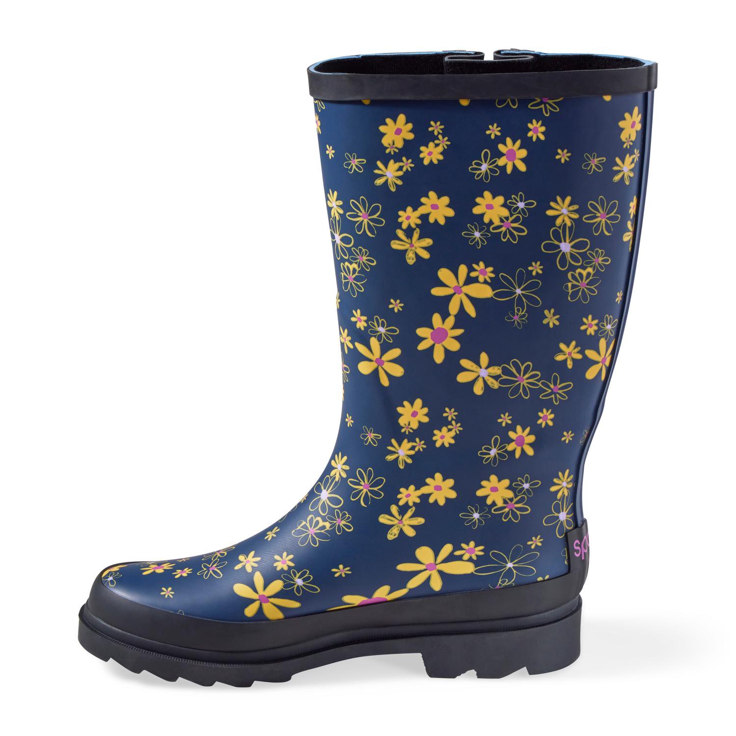 Sporto Women's Rain Boots, Navy Floral, Size 7
