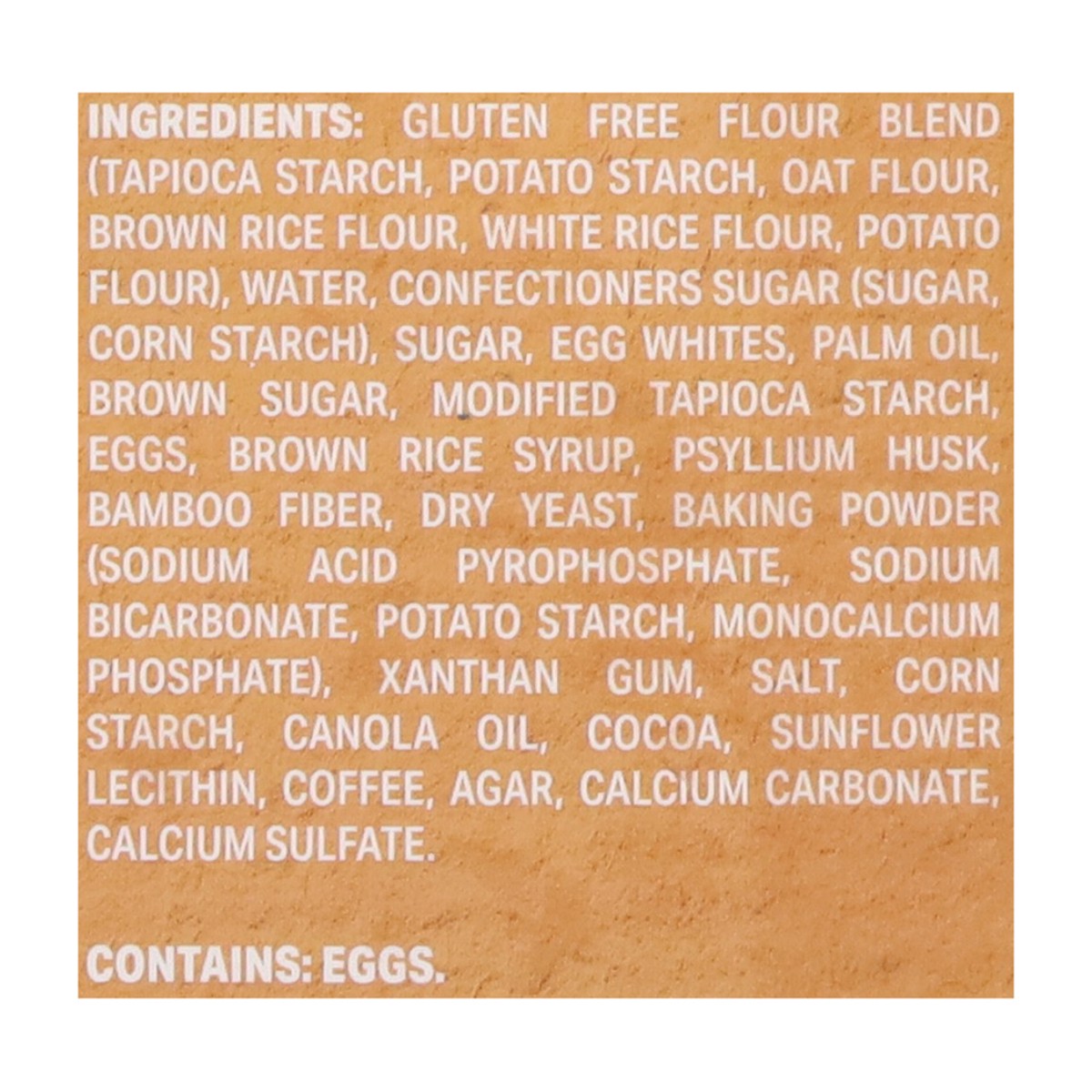 Gluten Free Flour Blend (Tapioca Starch, Potato Starch, Oat Flour, Brown Rice Flour, White Rice Flour, Potato Flour); Water; Confectioners Sugar (Sugar, Corn Starch); Sugar; Egg Whites; Palm Oil; Brow…