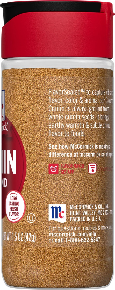 Rich and hearty McCormick Ground Cumin is always ground from whole cumin seeds. It brings earthy warmth and subtle citrus flavor to chili, tacos, steak and lamb. A global favorite in Mexican, Latin Am…