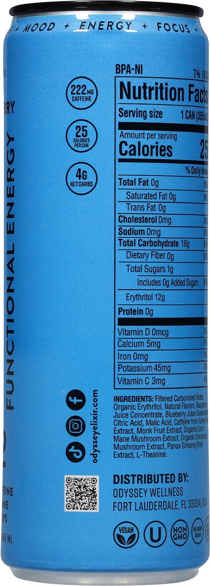 Odyssey Sparkling Blue Raspberry Functional Energy 12 fl oz