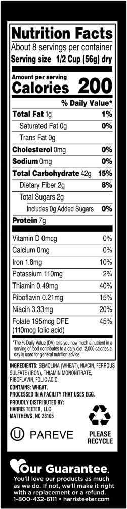 100% durum semolina. Al Dente every time. Enriched macaroni product. Satisfaction Plus Guaranteed. Harris Teeter pasta & noodle products. A shape for every taste. Together in Education: Support your l…