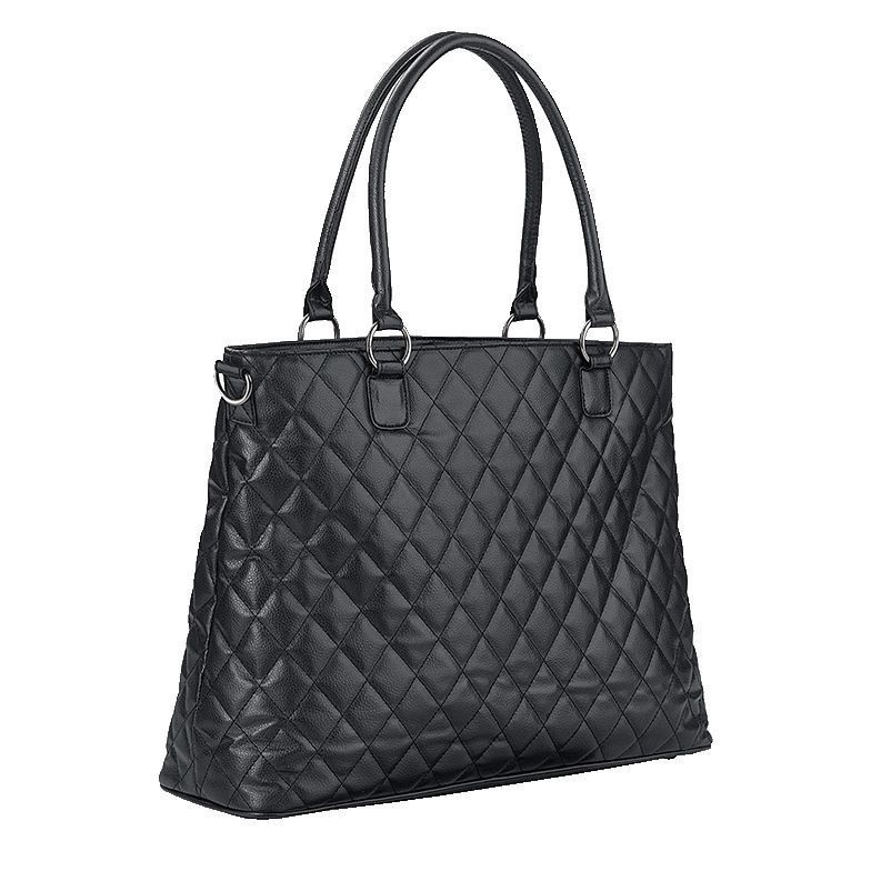 Bring your computer to the library or the office in this roomy tote. The adjustable shoulder strap offers comfortable carrying, while the metal feet and vinyl construction stand up to everyday use. De…