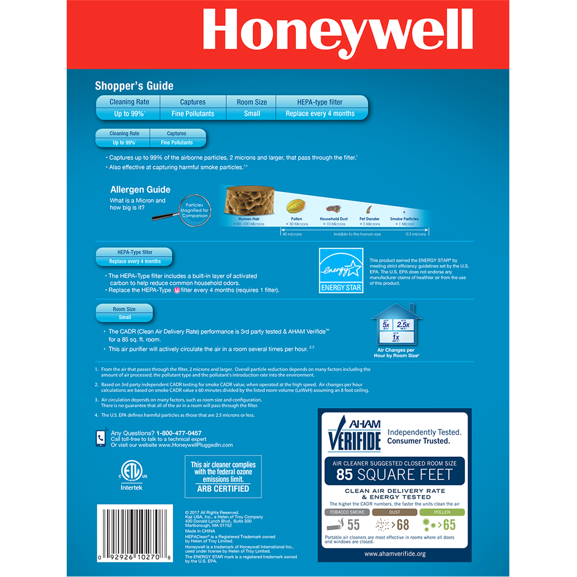 The Honeywell portable HEPAClean air purifier utilizes a collection of intuitive features to create an immaculate breathing experience. This tabletop air purifier uses a Honeywell HEPAClean filter tha…