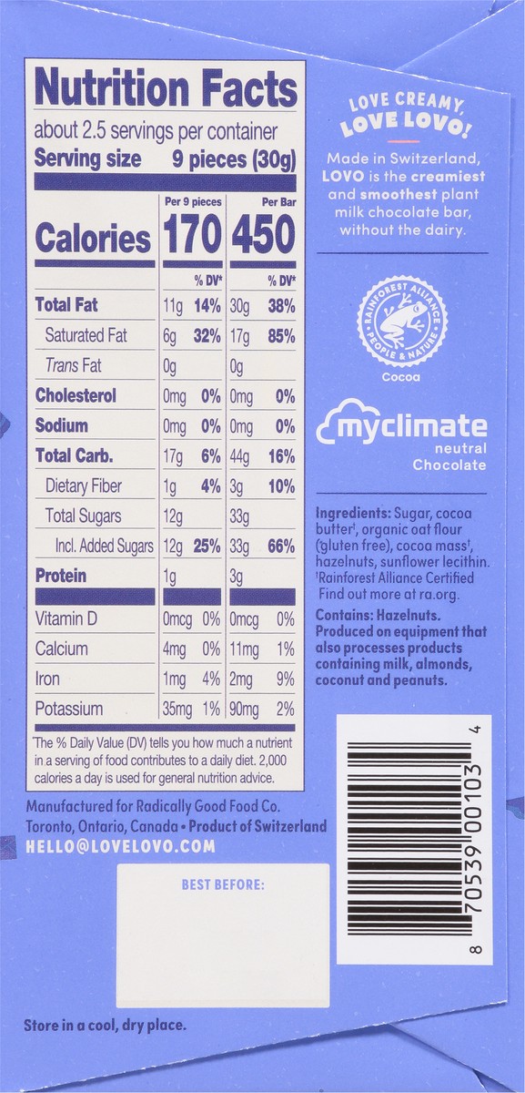 Lovo Swiss-Made Oatmilk Chocolate 2.82 oz