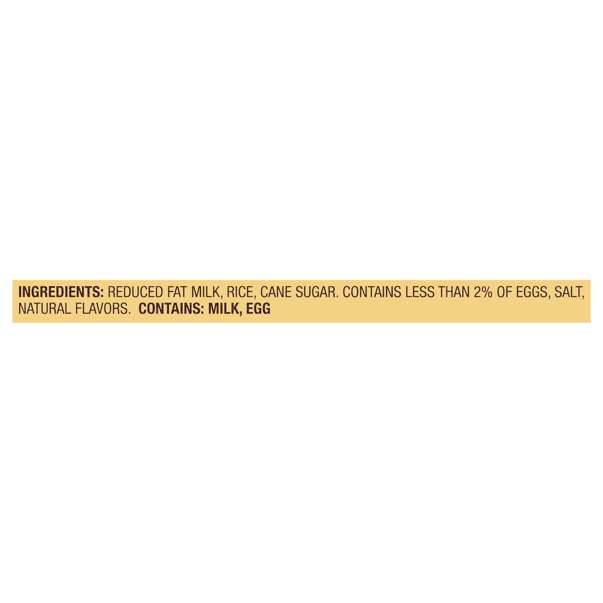 Reduced Fat Milk, Rice, Cane Sugar, Contains Less than 2% of Eggs, Salt, Natural Flavors.