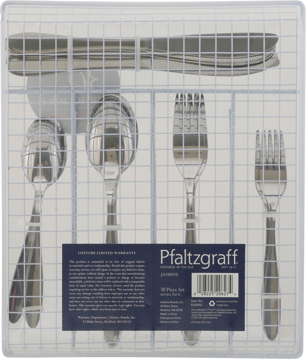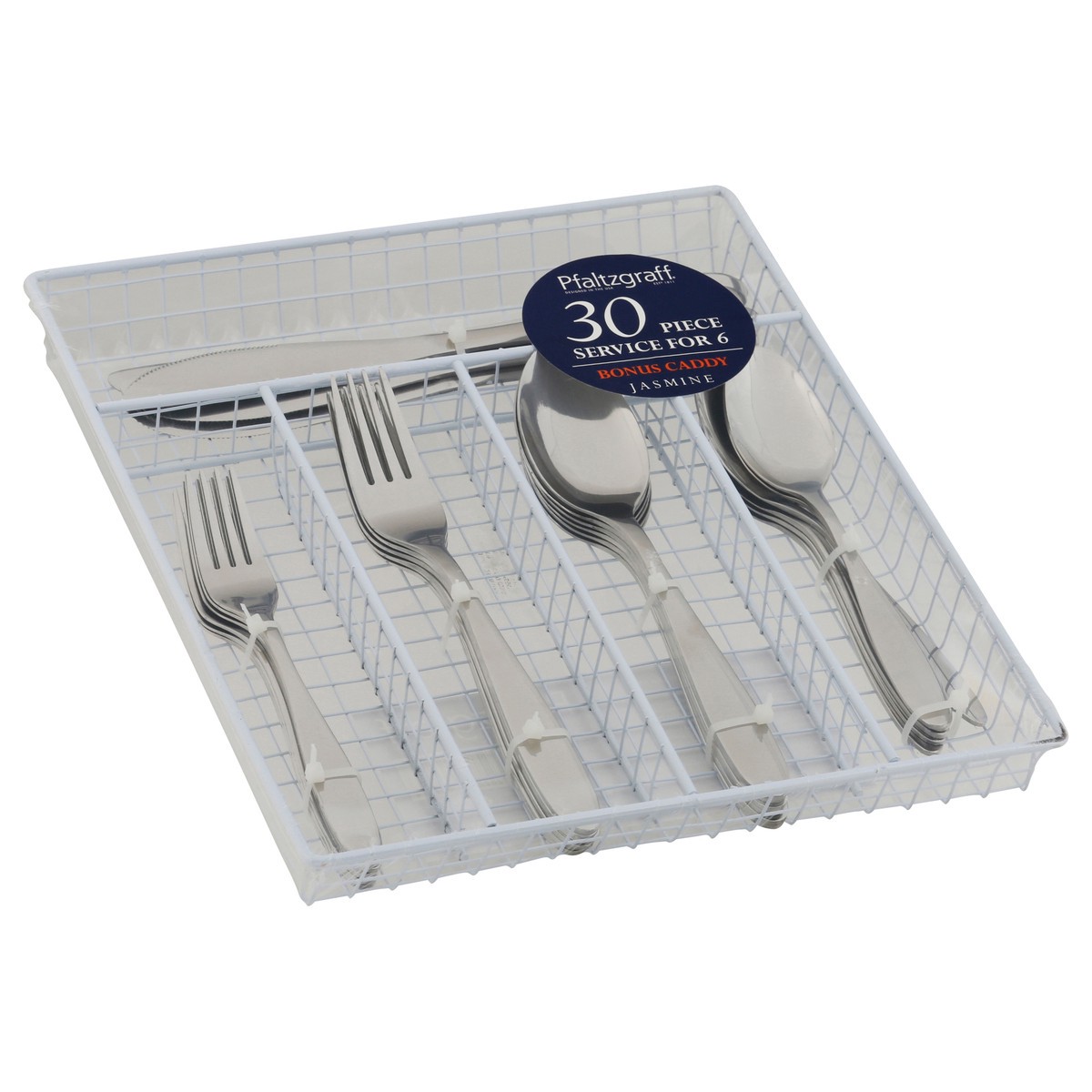This Pfaltzgraff Jasmine Flatware Set With Caddy features a simple, classic, teardropshaped handle that will compliment both formal and casual dining. Quality crafted of 180 stainless steel, this set …