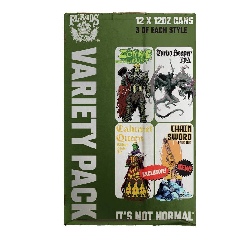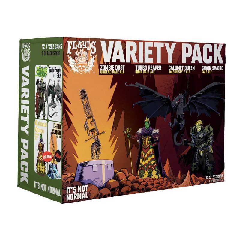 Rotating quarterly. Each Three Floyds Variety 12 Pack features 3 cans each of two year-round favorite brands, a brand-new exclusive beer, and a returning favorite from Three Floyds extensive library o…