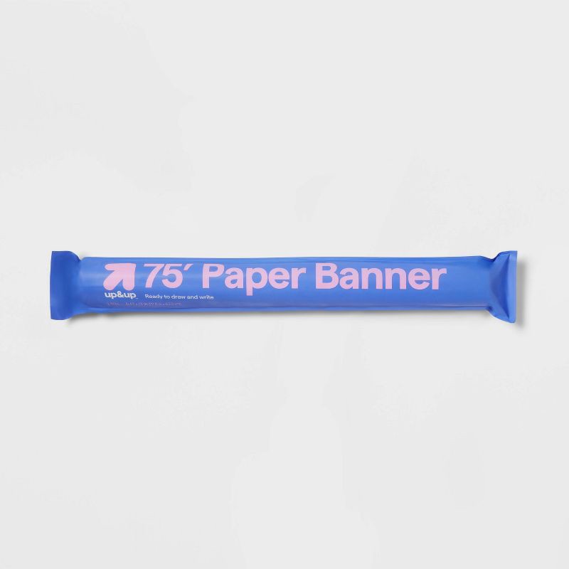 Create a personalized design that truly shines with this Paper Banner from up&up™. This 75-foot-long white banner is more than enough for any gathering and can be decorated with markers, stickers, sha…