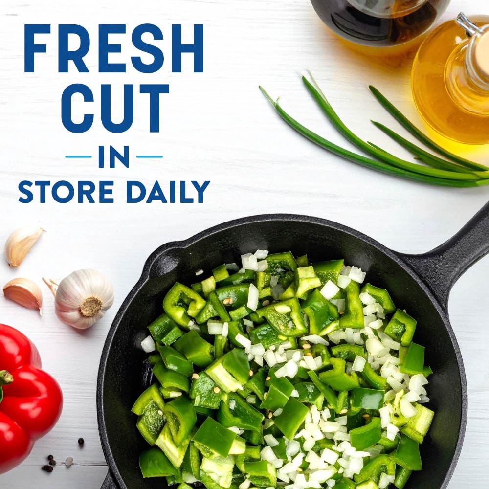 Fresh Cut Diced Pepper W/ White Onions, Prep helper. Fresh Cut Diced Peppers and Onions save you chopping time. The perfect flavor base for omelets, chili, and stir-frys.