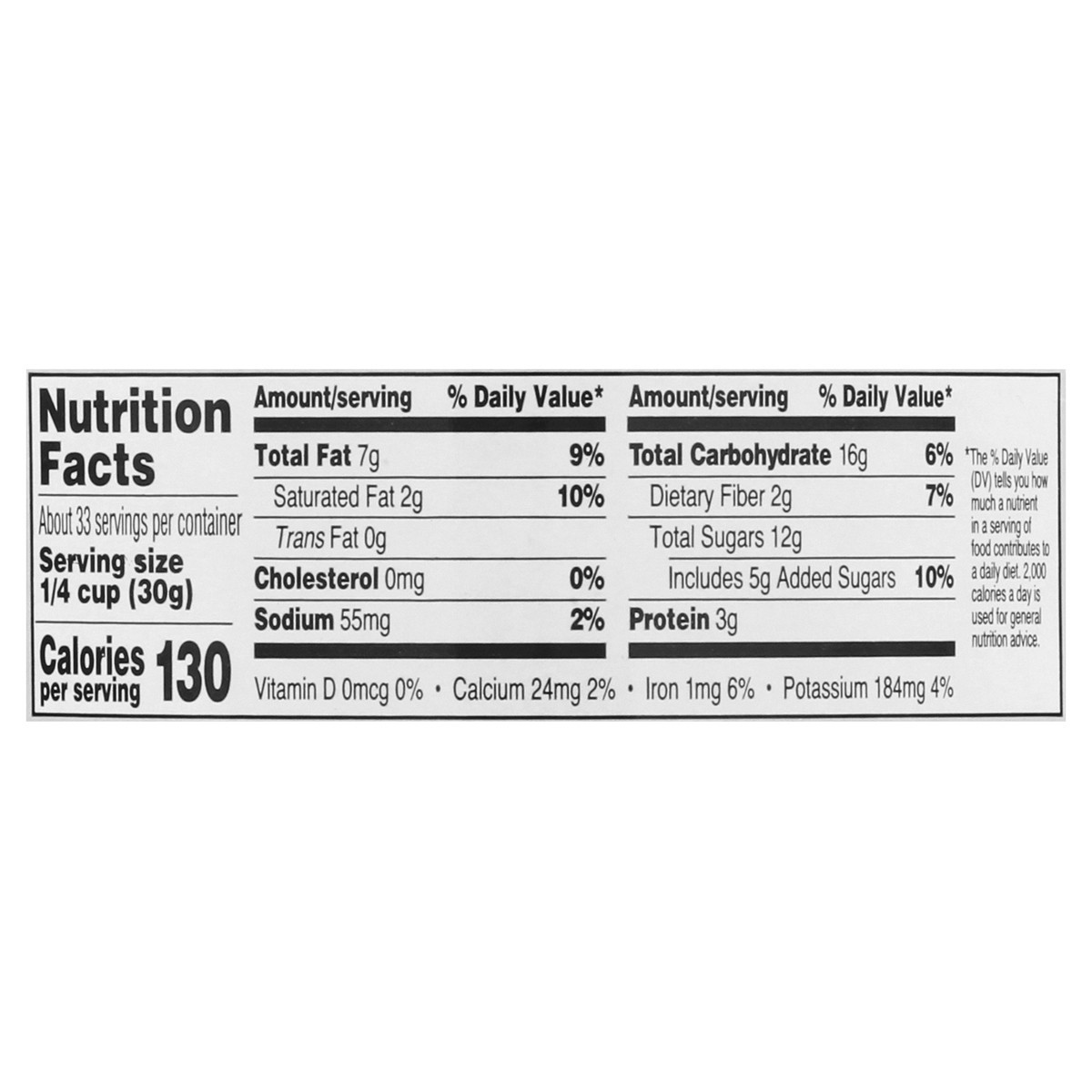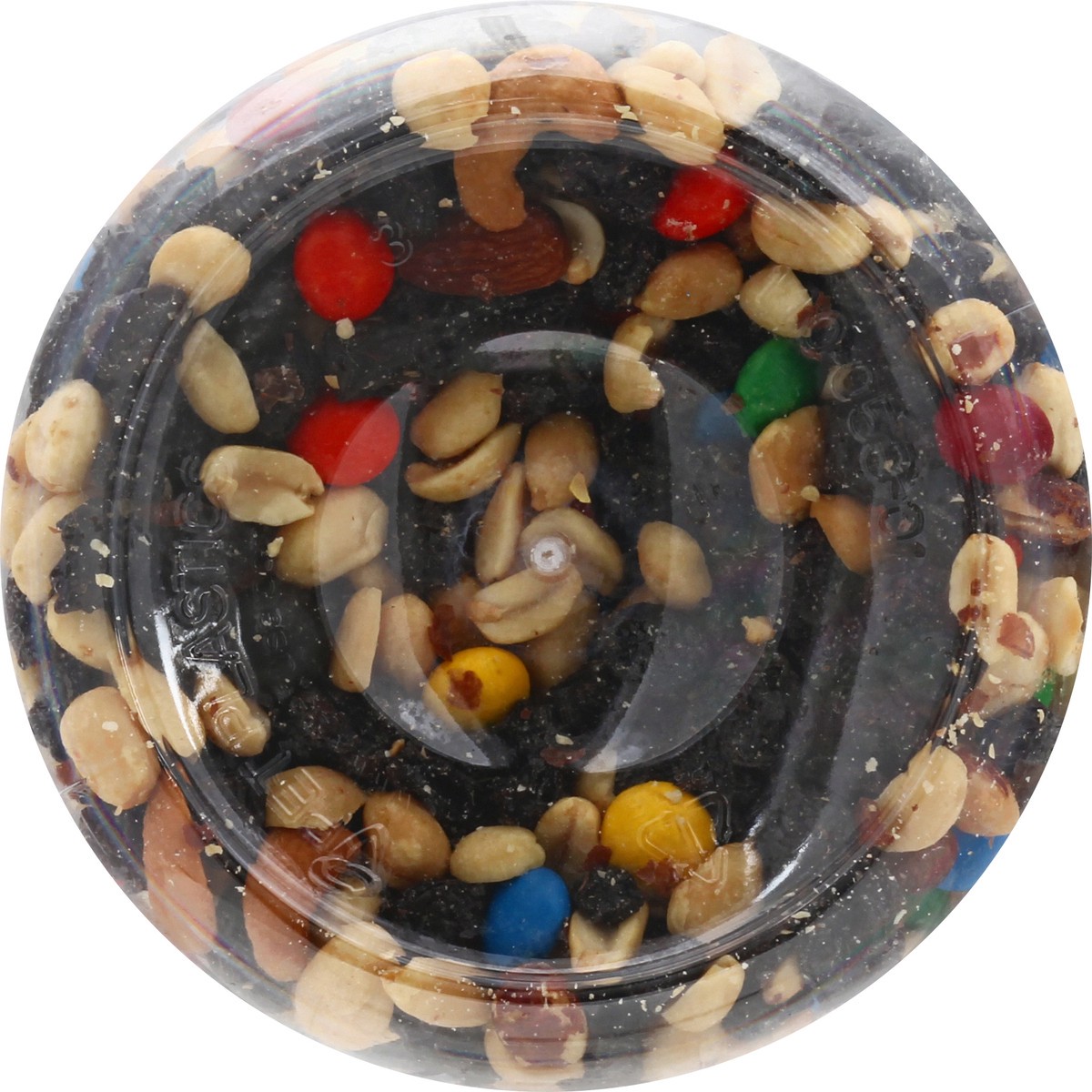 Raisins, Peanuts, candy coated chocolatey pieces, almonds and cashews. 130 calories per 1/4 cup. 100% Satisfaction Guaranteed: Our quality commitment. If not 100% satisfied, return unused product to y…
