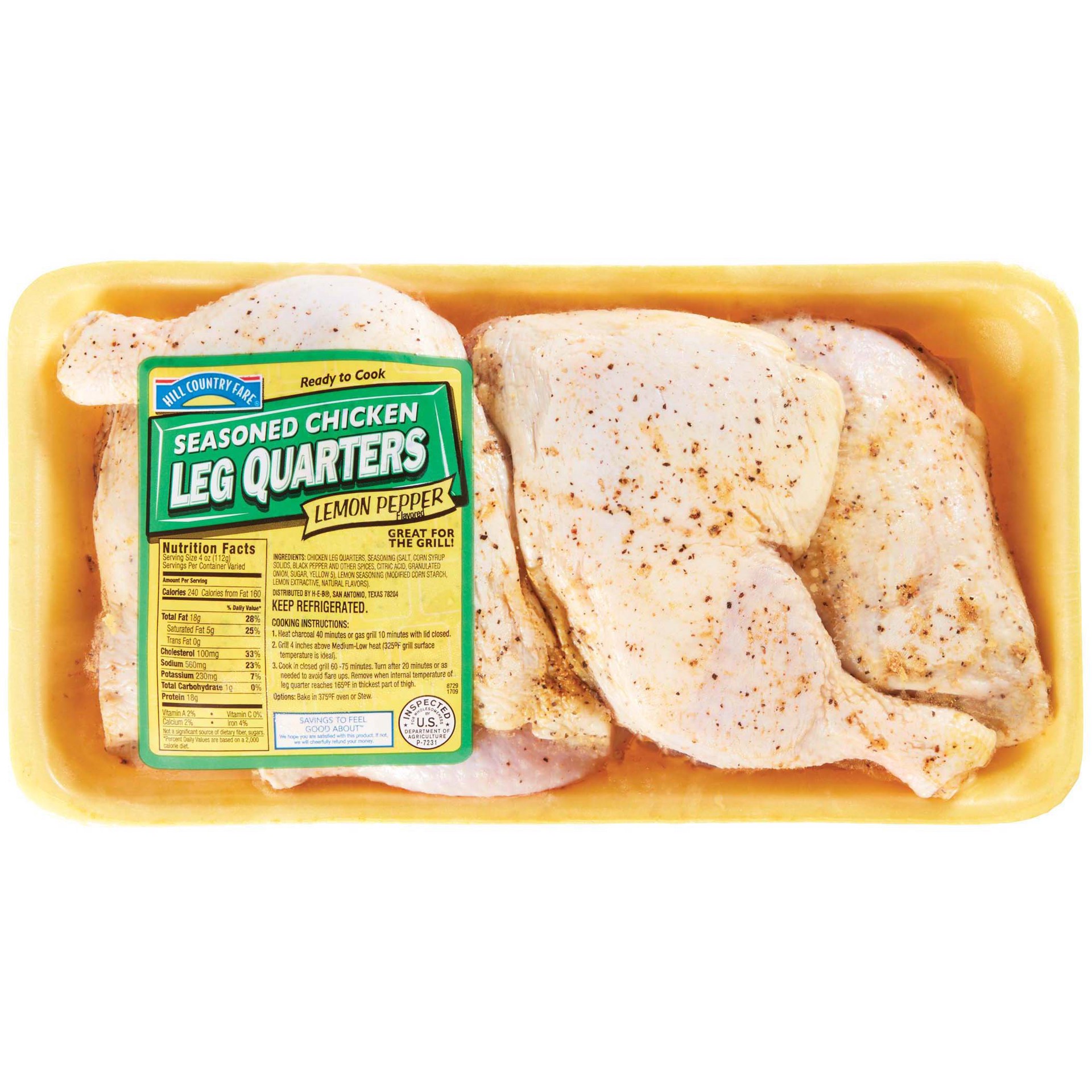 Craving chicken with a citrusy-peppery kick tonight? Enjoy the ease and convenience of these Hill Country Fare chicken leg quarters that are seasoned with lemon pepper. Great for oven-roasting or gril…