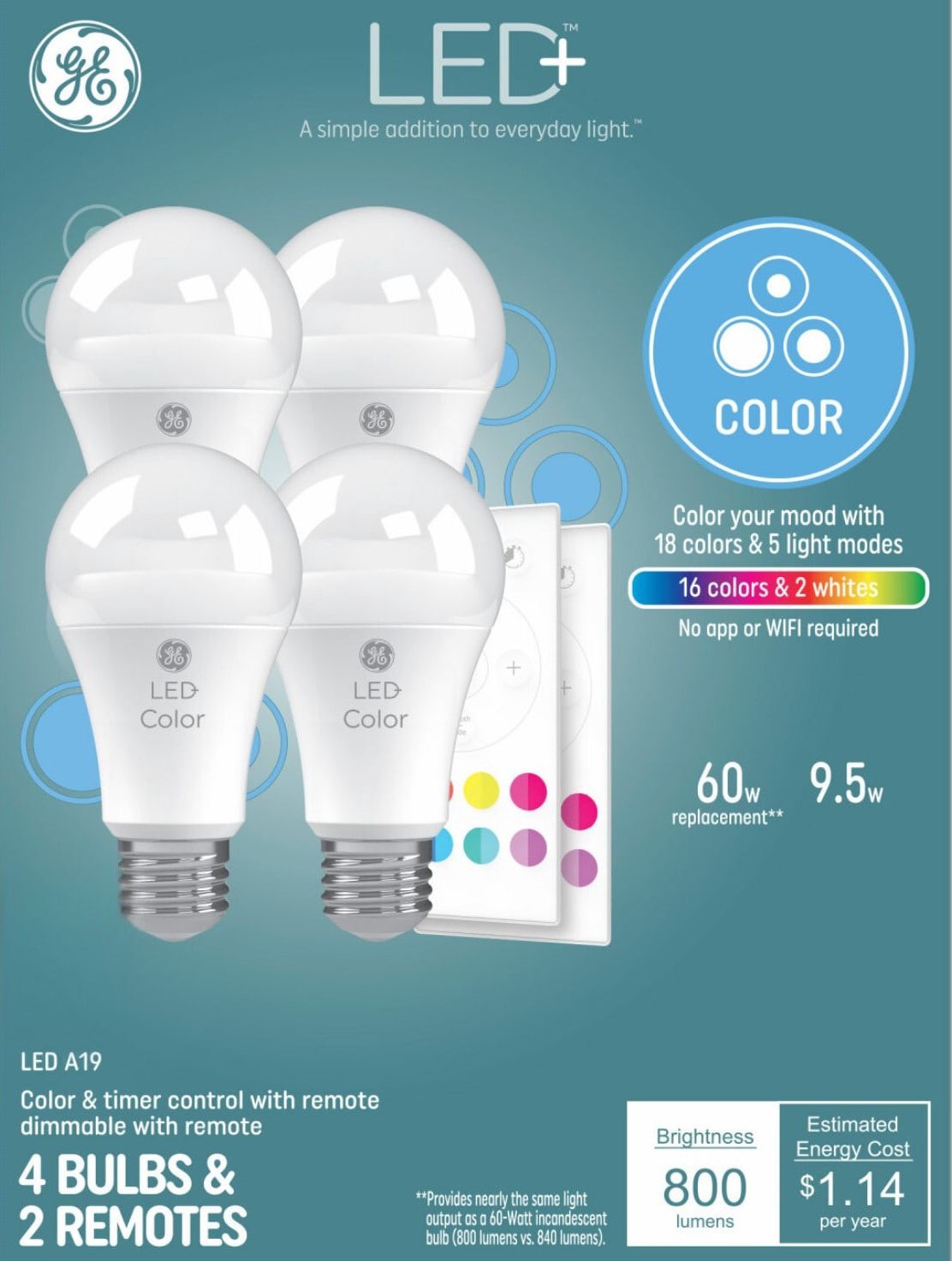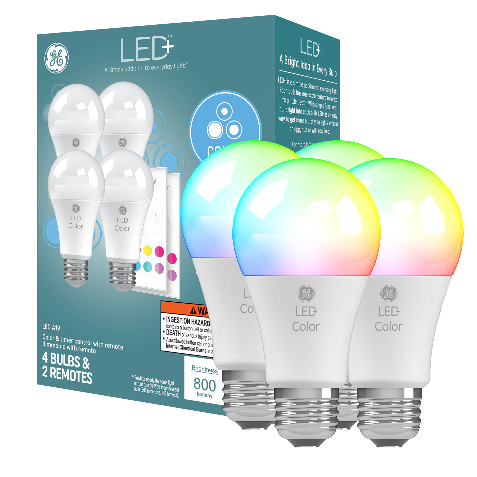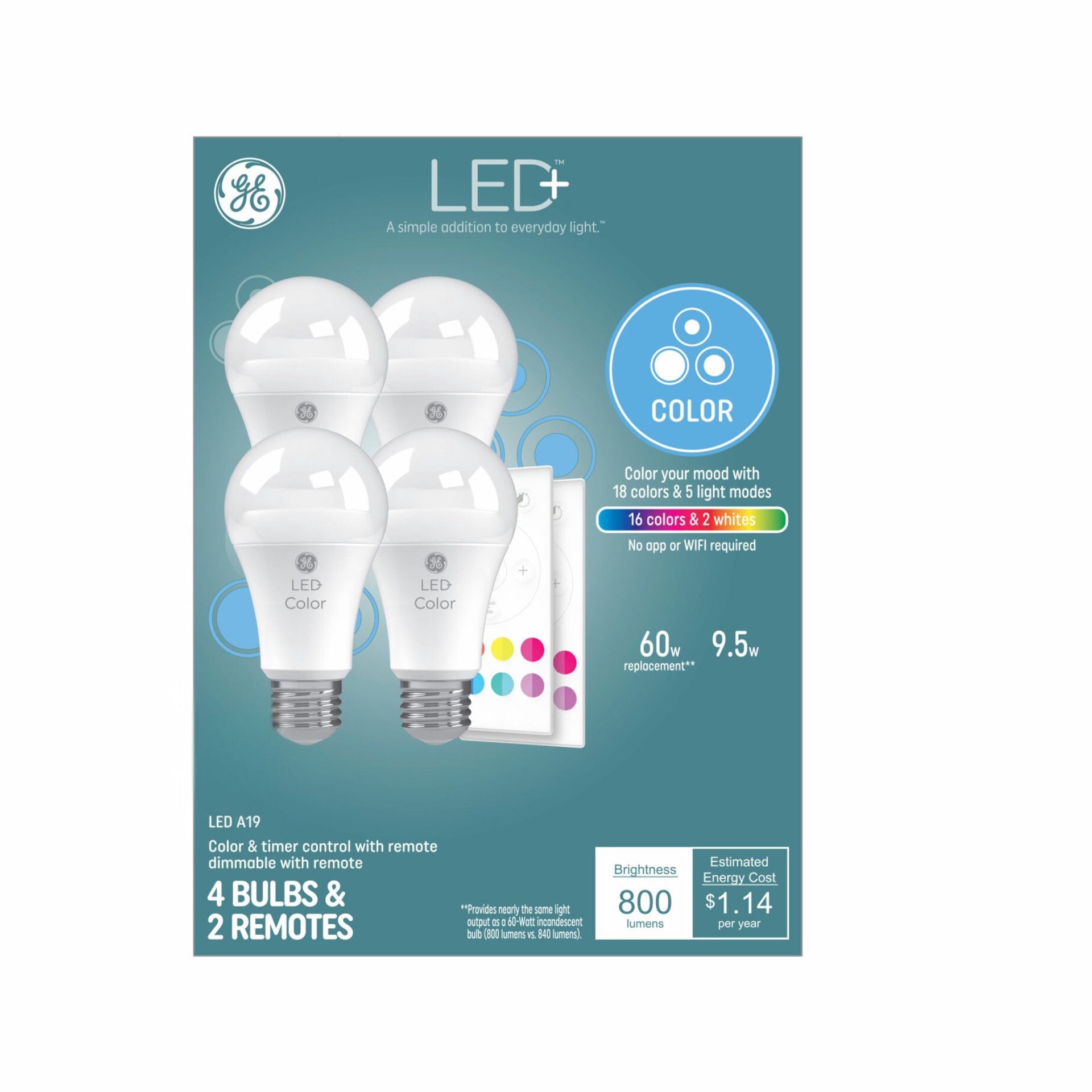 GE LED+ Color 60 -Watt EQ A19 Full spectrum Medium screw base E26 Dimmable LED General purpose Light Bulb 4 -Pack