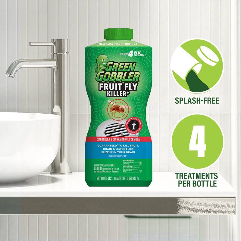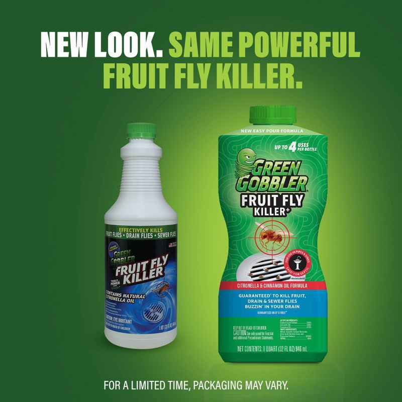 - KILL FRUIT, DRAIN & SEWER FLIES: Get rid of the fly infestation and get back to enjoying your space. Green Gobbler's thick gel formula clings to pipes to eliminate annoying drain fly infestations. It kills fruit flies, drain flies and sewer flies.