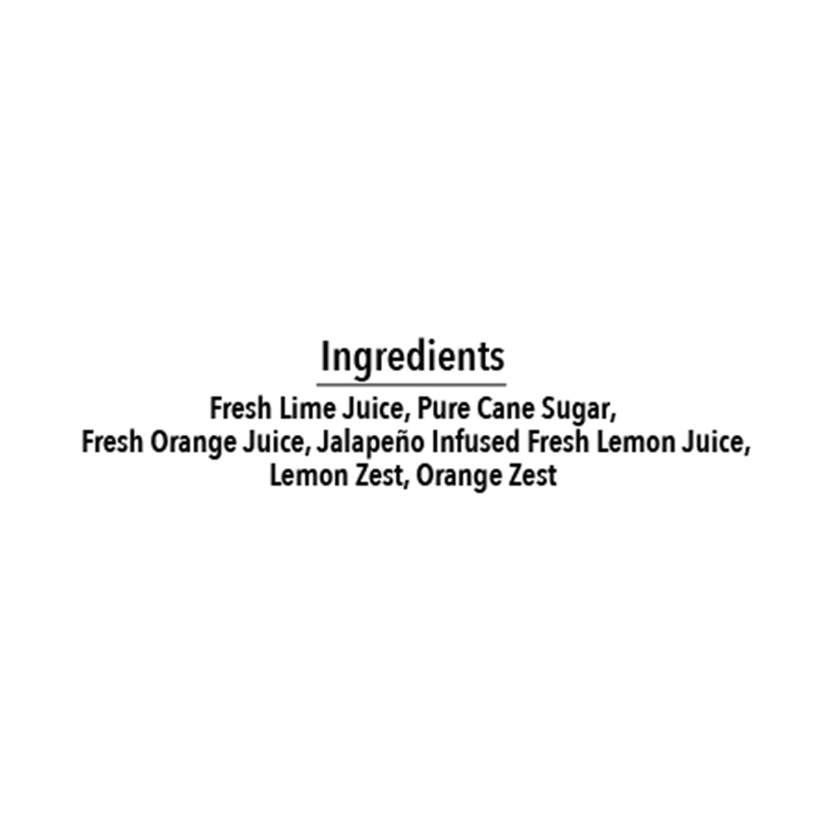 Fresh Lime Juice, Pure Cane Sugar, Fresh Orange Juice, Jalapeno Infused Fresh Lemon Juice, Lemon Zest, Orange Zest.