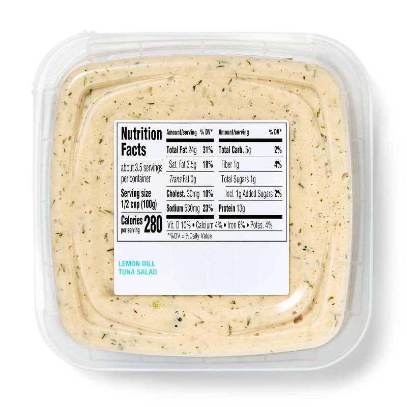 Get an easy meal or tasty snack on the table in no time with Lemon Dill Tuna Salad from Good & Gather™. This tuna salad is made with yellow fin tuna, mayonnaise and a seasoning blend for a delicious, …