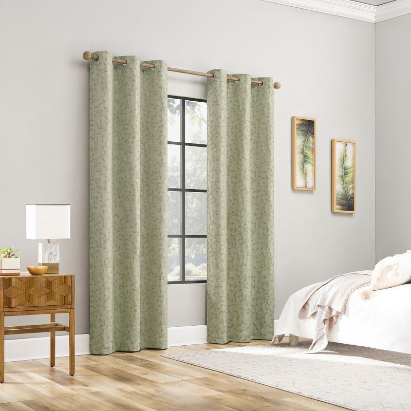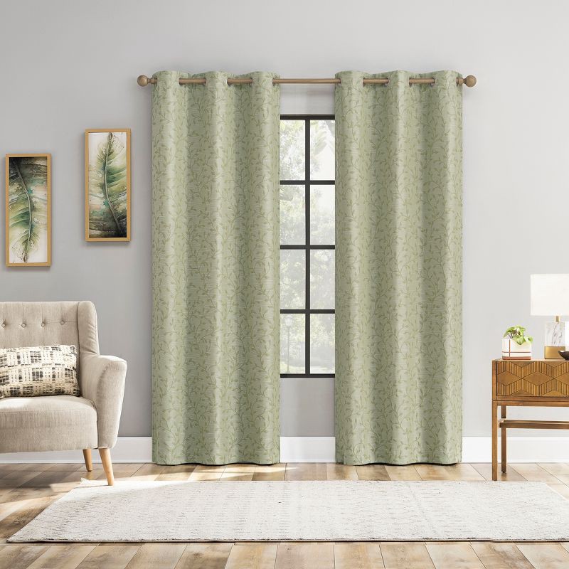 40"x63" Sun Zero Brinlee Leaf Silhouette 100% Blackout Grommet Curtain Panel Sage Green: Modern Floral, Energy Efficient, Noise Reduction