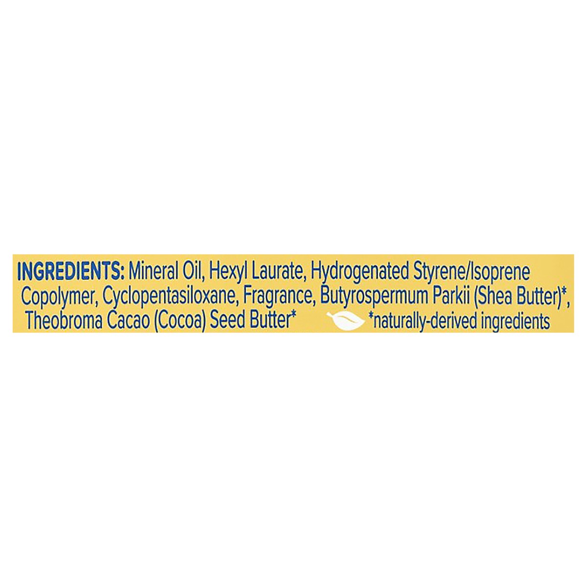 Mineral Oil, Hexyl Laurate (Naturally-Derived Ingredients), Hydrogenated Styrene/Isoprene Copolymer, Butyrospermum Parkii (Shea) Butter (Naturally-Derived Ingredients), Theobroma Cacao (Cocoa) Seed Bu…
