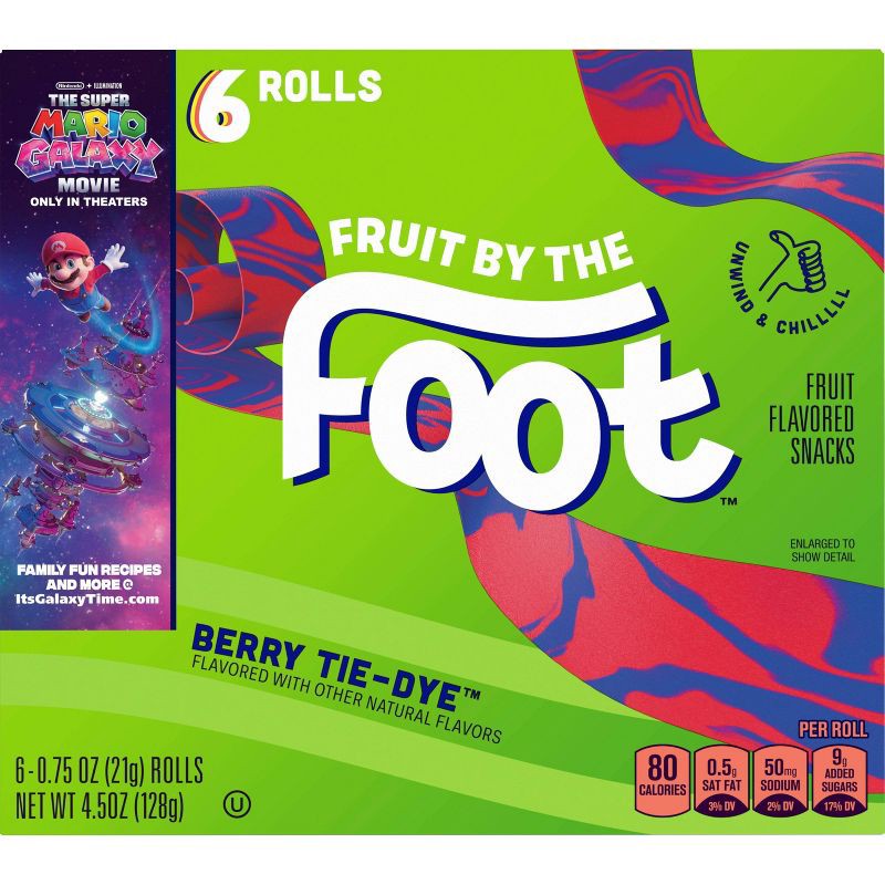 - FRUIT FLAVORED SNACKS: Unwrap delicious fun with Fruit by the Foot; Each tasty fruit flavored sheets strip packs a whole lot of berry tie-dye flavor and is rolled into a coil to create an exciting treat for the whole family