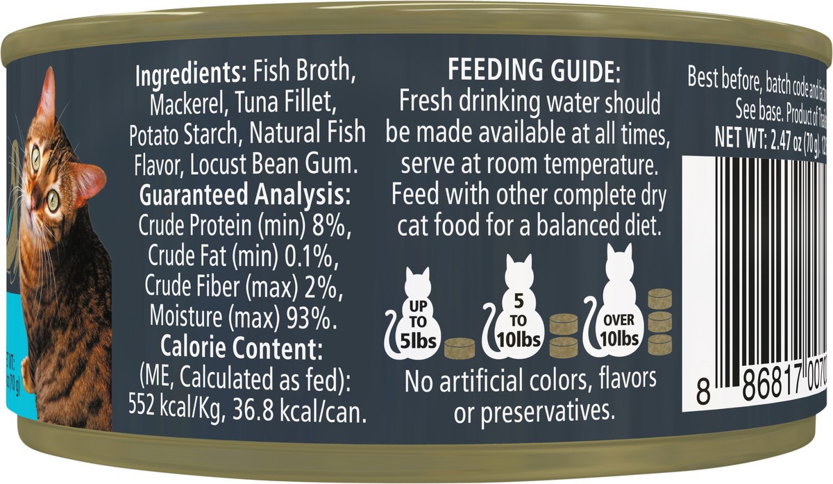 Fish Broth, Mackerel, Tuna Fillet, Potato Starch, Natural Fish Flavor, Locust Bean Gum.